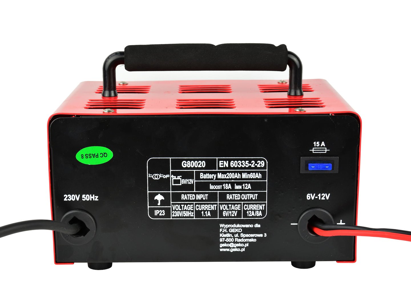 Auto punjač sa starterom, 75A, 6/12V | GEKO koristi se za punjenje i brzo oživljavanje ispražnjenih baterija u automobilima ili motociklima. Punjač s funkcijom pokretanja dizajniran je za pokretanje i punjenje olovnih baterija napona 6 V ili 12 V, koje se koriste, između ostalog, u osobnim automobilima, motociklima, plovilima itd.