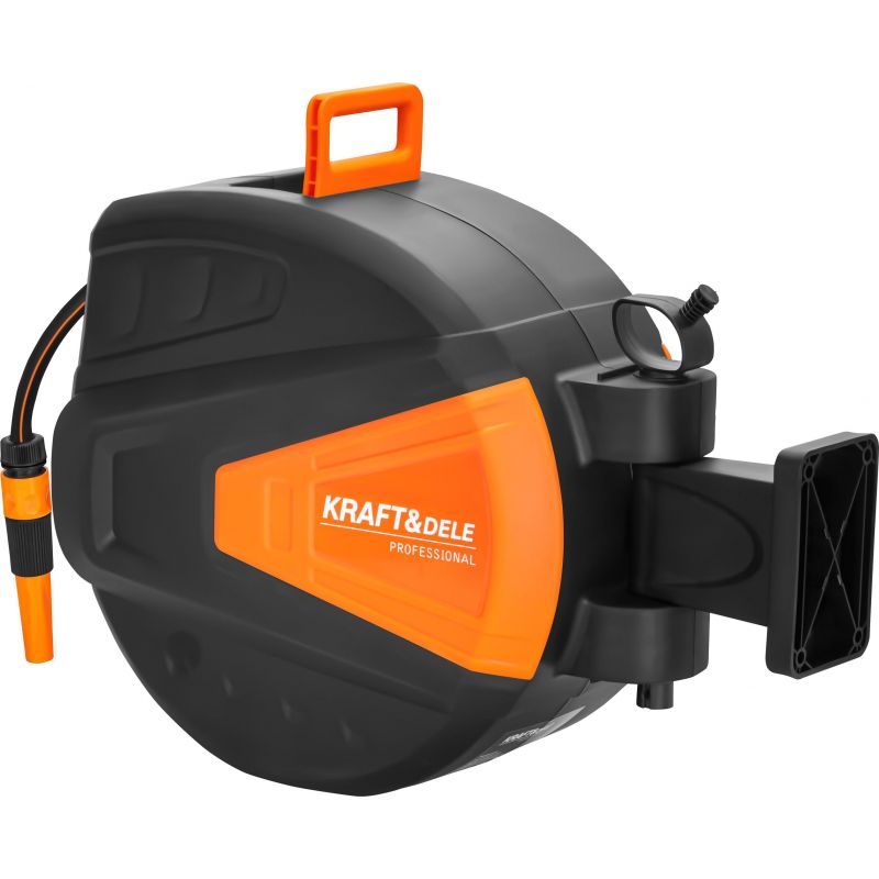Automatski kolut za crijevo, 30m+2m, 1/2″ | KD2153 je funkcionalni automatski kolut, dizajniran za praktičnu i preglednu upotrebu u vrtu. Automatski sustav namotavanja omogućuje brzo spremanje crijeva bez zapetljavanja i savijanja, što značajno povećava udobnost svakodnevnog rada. Ovaj model se može montirati na zid, štedeći prostor i održavajući red u vašem vrtu ili garaži. Osim toga, opremljen je ručkom za jednostavan transport koluta. Zahvaljujući čvrstoj konstrukciji i izdržljivom PVC materijalu, prikladan je za redovitu upotrebu.
