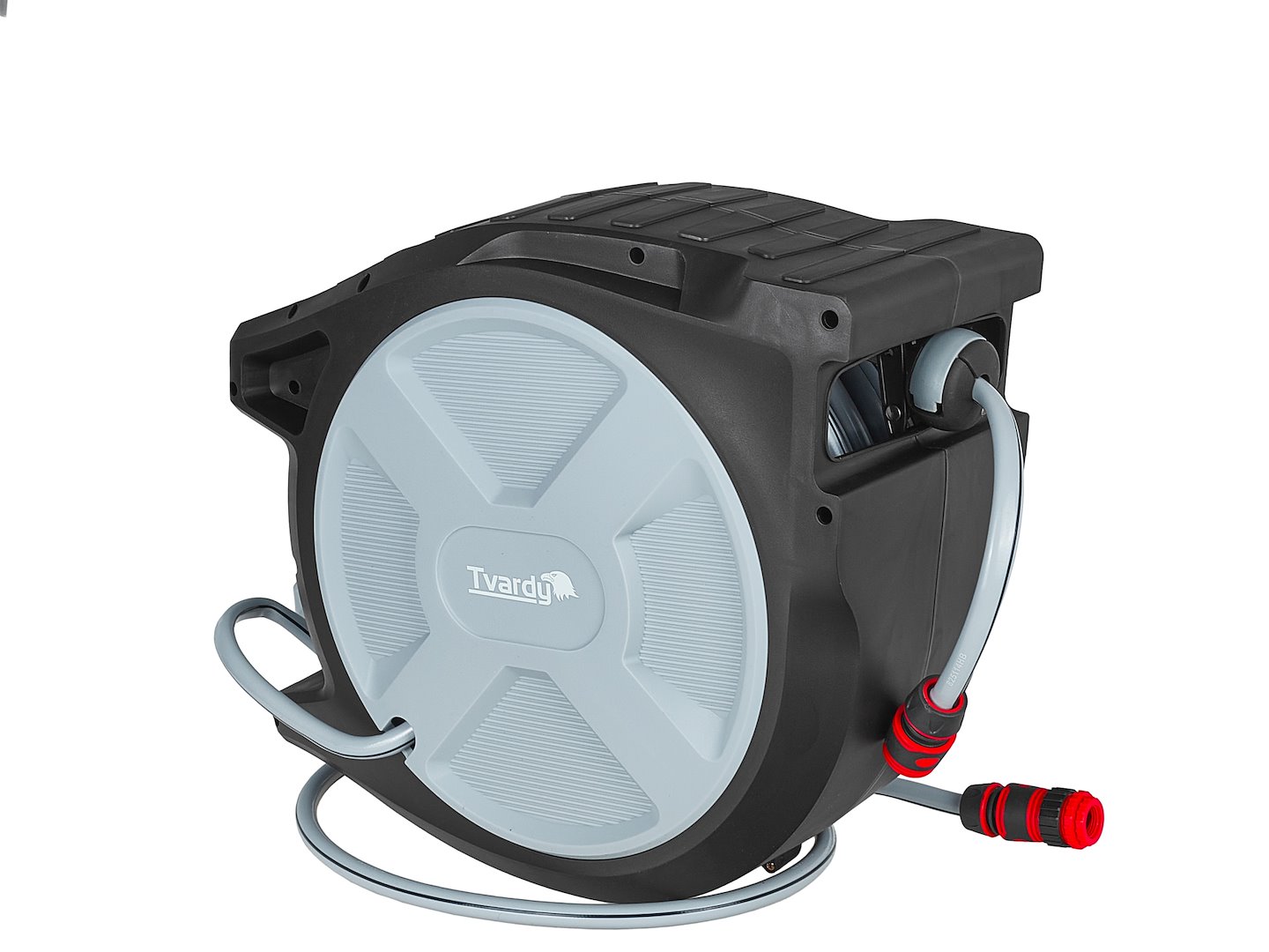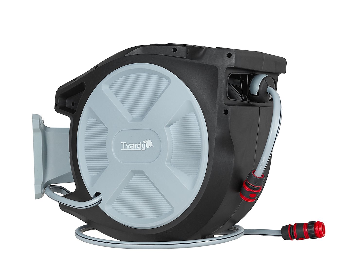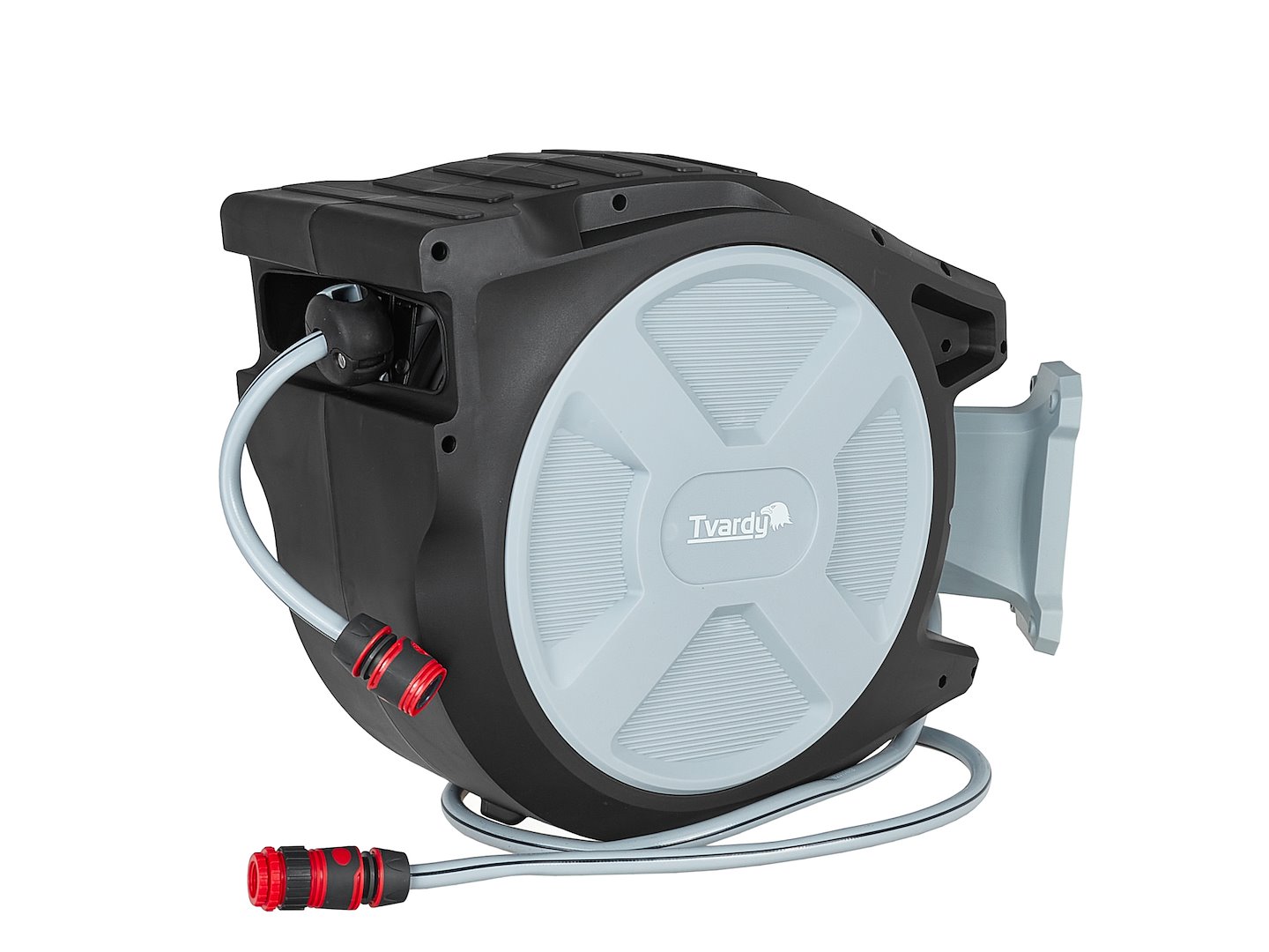 Automatski kolut za crijevo BRASS-LINE, 1/2″, 35m | Tvardy praktično je rješenje za svaki vrt, parcelu ili kućnu radionicu. Zahvaljujući automatskom mehanizmu za namatanje, crijevo uvijek ostaje uredno i spremno za upotrebu. Čvrsto kućište i praktičan sustav za montažu na zid čine ovaj set izdržljivim, funkcionalnim i vrlo praktičnim za svakodnevnu upotrebu. Ugrađeni, izdržljivi automatski mehanizam za namatanje omogućuje vam brzo i praktično skrivanje crijeva nakon rada.