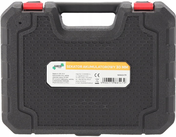 Dvije baterije od 1500 mAh osiguravaju duge radne sate bez potrebe za čestim punjenjem. Rad u vrtu nikada nije bio udobniji – odsutnost kabela omogućuje slobodno kretanje. Izdržljive, oštre oštrice škara jamče čisto i precizno rezanje, što je ključno za zdrav rast biljaka. Ergonomska ručka i lagani dizajn čine škare udobnima za korištenje čak i dulje vrijeme. Tanak dizajn omogućuje vam rad na teško dostupnim mjestima, poput gustog grmlja ili krošnji drveća.
