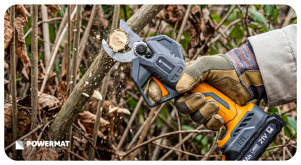 Bežične vrtne škare, 30 mm | PM-SA-21V-2AM su alat za brzo i precizno rezanje grana do 30 mm u vrtu, voćnjaku ili vinogradu. Motor bez četkica snage 1000 W daje vam konstantnu i ravnomjernu snagu rezanja čak i kod tvrdih grana. Ne morate se naprezati sa škarama – jednim pritiskom, grana do 30 mm je čista i bez oštećenja.