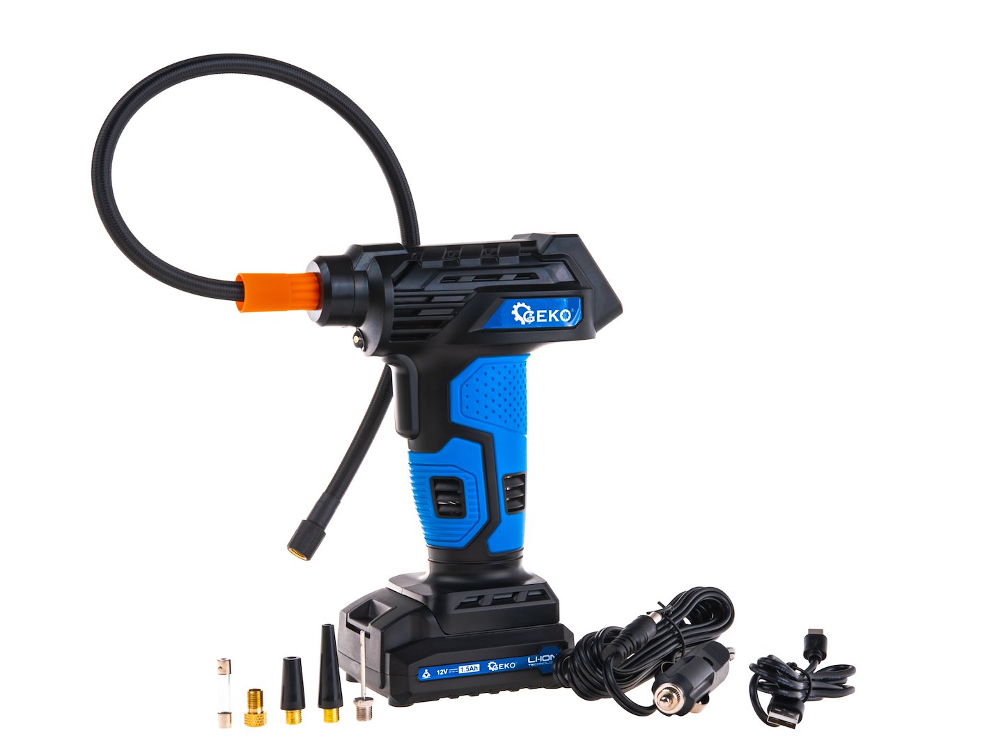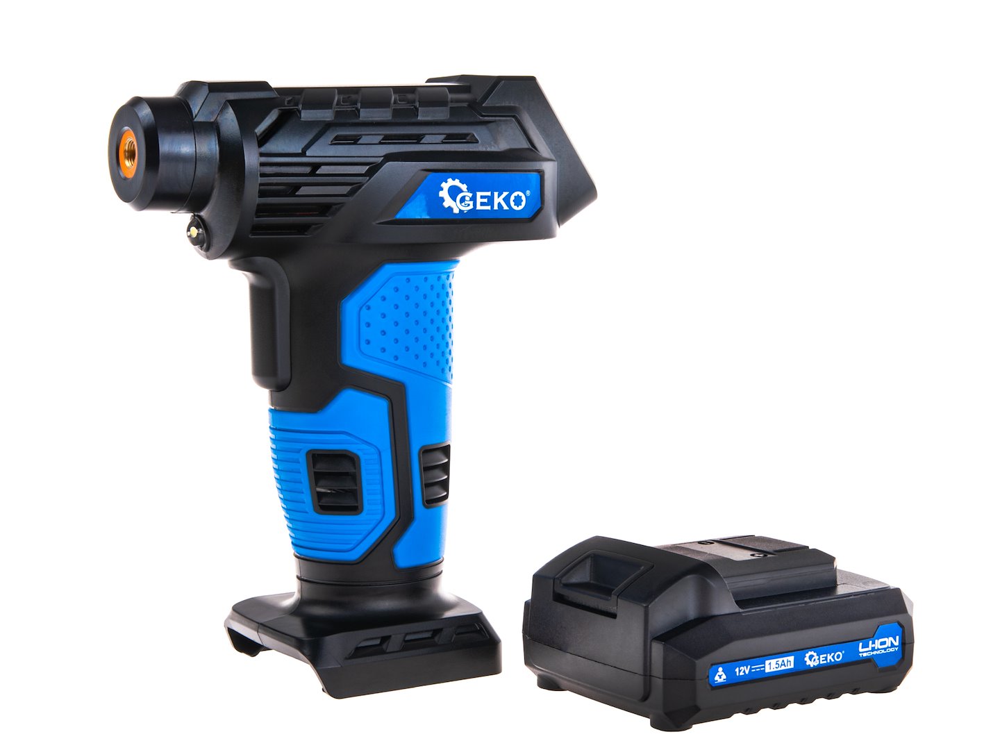 Bežični kompresor, 12 V, 0,2-10,3 bara | GEKO je mobilno i praktično rješenje koje se lako uklapa u prtljažnik, ormar ili ruksak. Lagan je, praktičan i iznenađujuće snažan, idealan za brzo napuhavanje guma, lopti ili madraca, gdje god se nalazili.