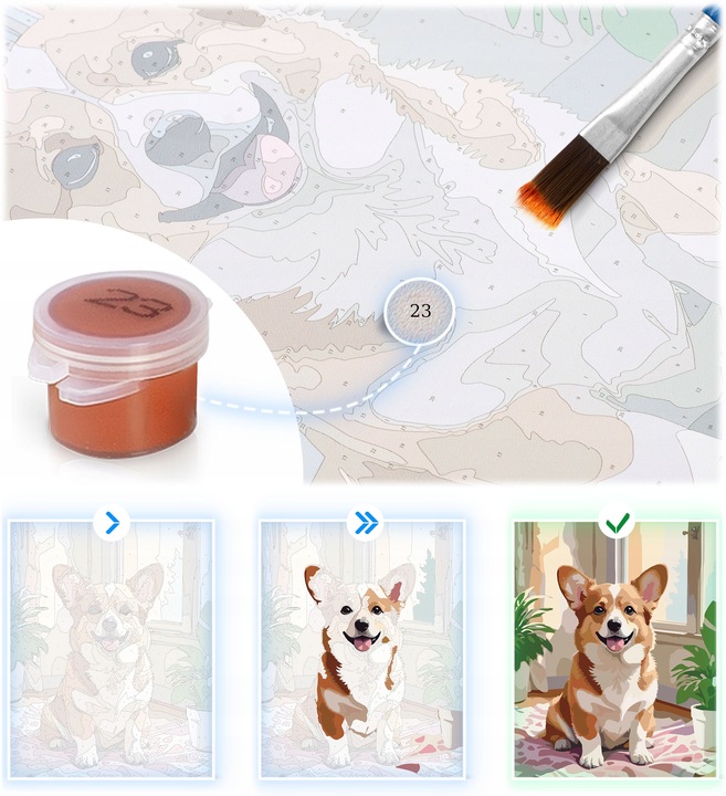 Slikajte jednostavno, korak po korak. Ispunite označene okvire odgovarajućom bojom, počevši s većim površinama, a zatim prijeđite na detalje. Postupno ćete vidjeti kako vaš rad poprima oblik i boje. Samo slijedite brojeve, a ostalo će se samo od sebe obaviti! Slikanje po brojevima prikladno je i za parove, braću i sestre ili cijele obitelji. Ukratko, idealan je način za provođenje zajedničkog vremena.