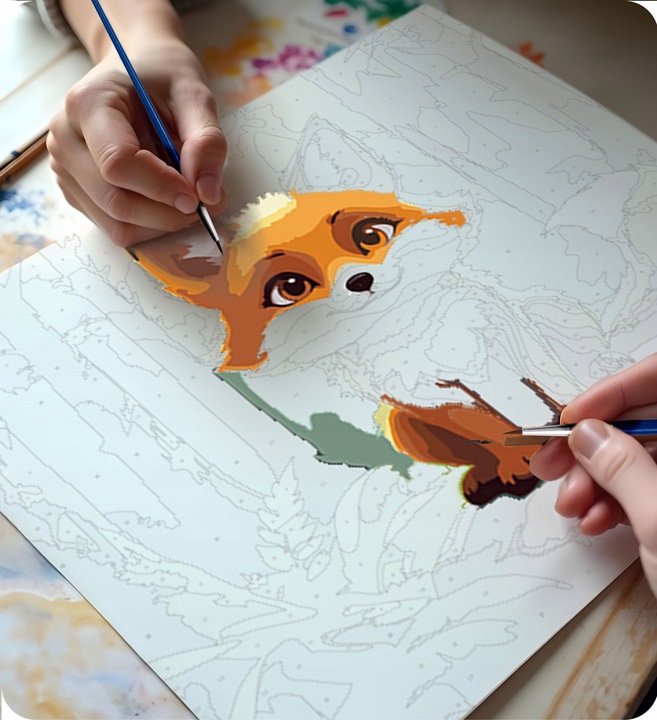 Slika po brojevima, 40x50cm, lisica | Massido je set koji vam omogućuje opuštanje dok ispunjavate okvire bojama i stvarate vlastito umjetničko djelo. Vesel, šareni uzorak odličan je izbor za velike i male umjetnike koji žele otkriti radost slikanja. Idealno za provođenje kreativnog vremena s obitelji i stvaranje jedinstvenog umjetničkog djela punog boja!