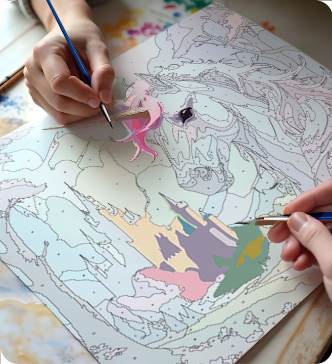 Bojajte jednostavno, korak po korak. Ispunite označene kvadrate odgovarajućom bojom, počevši s većim površinama, a zatim prijeđite na detalje. Postupno ćete vidjeti kako vaš rad poprima oblik i boje. Samo slijedite brojeve, a ostalo će se samo od sebe dogoditi! Slikanje po brojevima prikladno je i za parove, braću i sestre ili cijele obitelji. Ukratko, idealan je način za provođenje zajedničkog vremena.