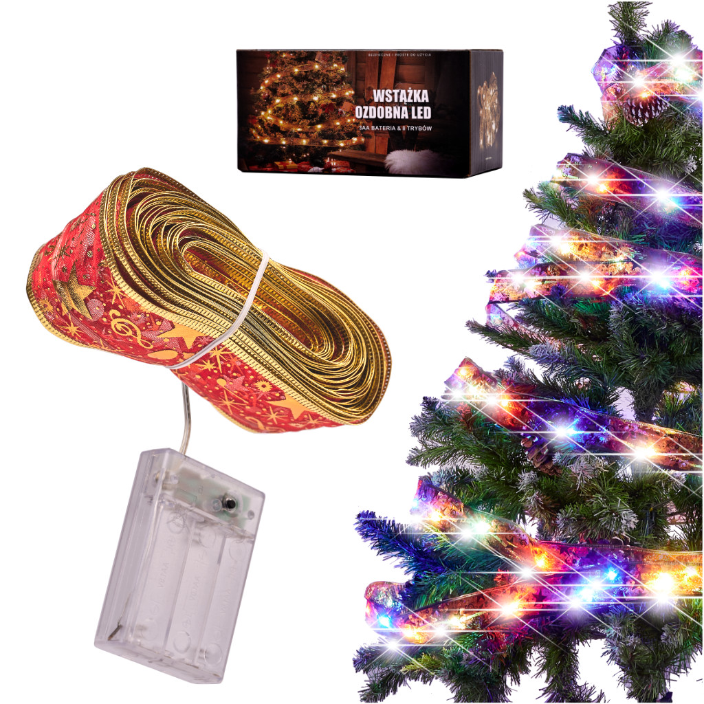 Božićna svjetla, vrpca, 10m | 100 LED na baterije idealna su za stvaranje ugodne i svečane atmosfere bilo gdje u domu. S duljinom od 10 metara, idealan su božićni ukras. Stotinu šarenih lampica stvorit će svečanu atmosferu. Zahvaljujući napajanju baterijama, traka se može objesiti bilo gdje. Osam načina osvjetljenja omogućuje vam brzu promjenu raspoloženja u prostoriji – samo pritisnite gumb. LED lanac izrađen je od visokokvalitetnih materijala i potpuno je siguran. Ima CE certifikat.
