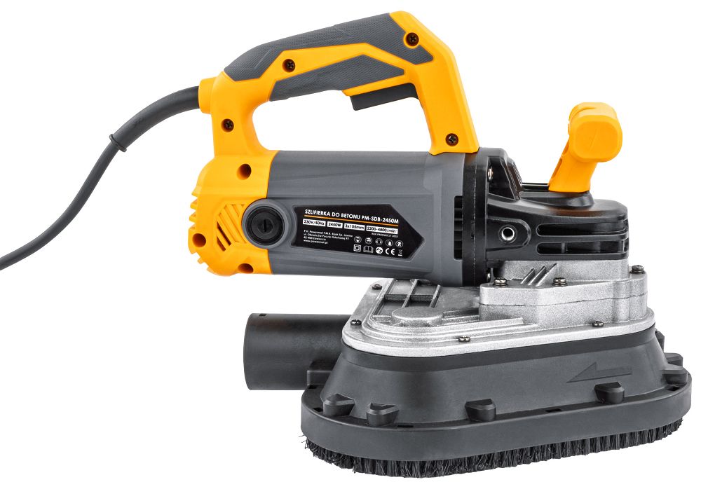 Brušilica za beton, 2450W | PM-SDB-2450M namijenjena je za suhi rad na betonu, žbuci, estrihu, ljepilima, bojama, drvu, metalu i kamenu. Jedan uređaj omogućuje uklanjanje premaza, ostataka ljepila te zaglađivanje i hrapavost površina za daljnju površinsku obradu. Uređaj je opremljen motorom od 2450 W, koji osigurava visoku učinkovitost brušenja čak i na tvrdim površinama poput betona ili estriha.