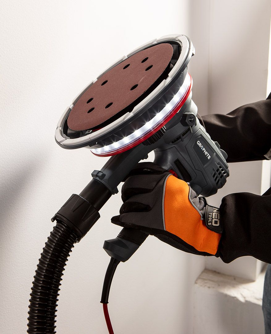 Brušilica za žbuku, 900W, 180mm | GRAPHITE je visokokvalitetni uređaj za obradu žbukanih površina s praktičnom LED rasvjetom. LED rasvjeta omogućuje vam još preciznije obavljanje zadataka. Brusilica ima snagu od 900 W i kontinuirano podesivu rotacijsku glavu s rasponom brzine od 1400 do 2700 o/min. Brusni disk ima promjer od 180 mm.