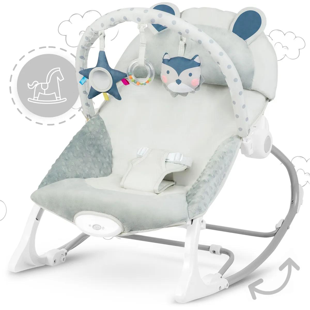 Dječja ljuljačka vibrirajuća ležaljka, siva | Ricokids pruža udobno i sigurno mjesto za opuštanje ili zabavu vaše bebe zahvaljujući interaktivnim značajkama. To je svestran i udoban uređaj za bebe, dizajniran da ponudi ravnotežu između opuštanja i stimulacije. Ima nježne vibracije koje pomažu smiriti vašeg mališana i nagibni luk s interaktivnim igračkama koje će uhvatiti pogled i dodir vaše bebe.