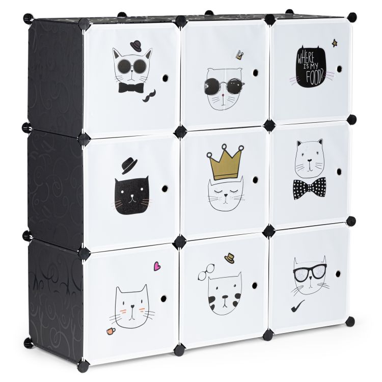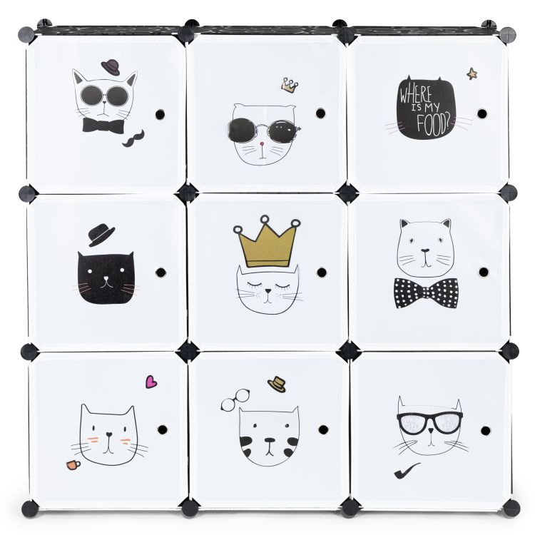 Svaka od 9 polica može podnijeti do 3 kg, pa vam omogućuje pohranu knjiga, plišanih igračaka i setova za slaganje, a zahvaljujući jednostavnom pristupu, djeca mogu sama održavati stvari urednima. Ormar ima lako otvarajuća vrata sa šarenim grafikama likova iz bajki, životinja ili drugih motiva koji će oživjeti dječju sobu. Sastavljanje je jednostavno zahvaljujući spojnicama izrađenim od izdržljivog ABS materijala, a konfiguraciju možete prilagoditi prema potrebi.