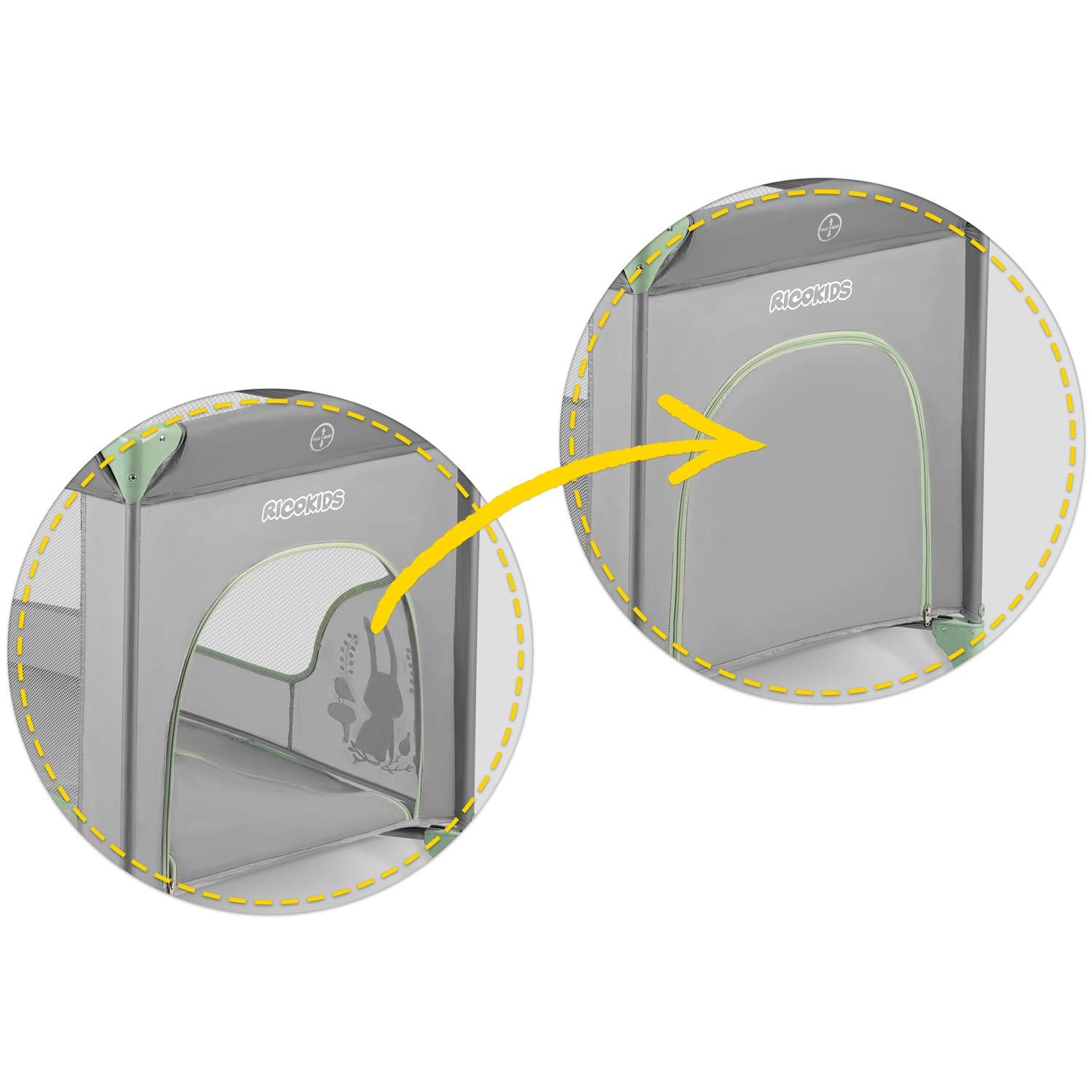 Dječji putni krevetić RK-240, sivo-zeleni | Ricokids je sklopivi i udoban prostor za spavanje idealan za putovanja, kampiranje ili posjete. Krevetić je koristan na putu i u svakodnevnoj upotrebi. Neophodan je prilikom selidbe, za drijemanje kada dođu gosti s djecom ili kao dječji kutak. Završni detalji bez oštrih rubova štite vaše dijete i pružaju vam mir.