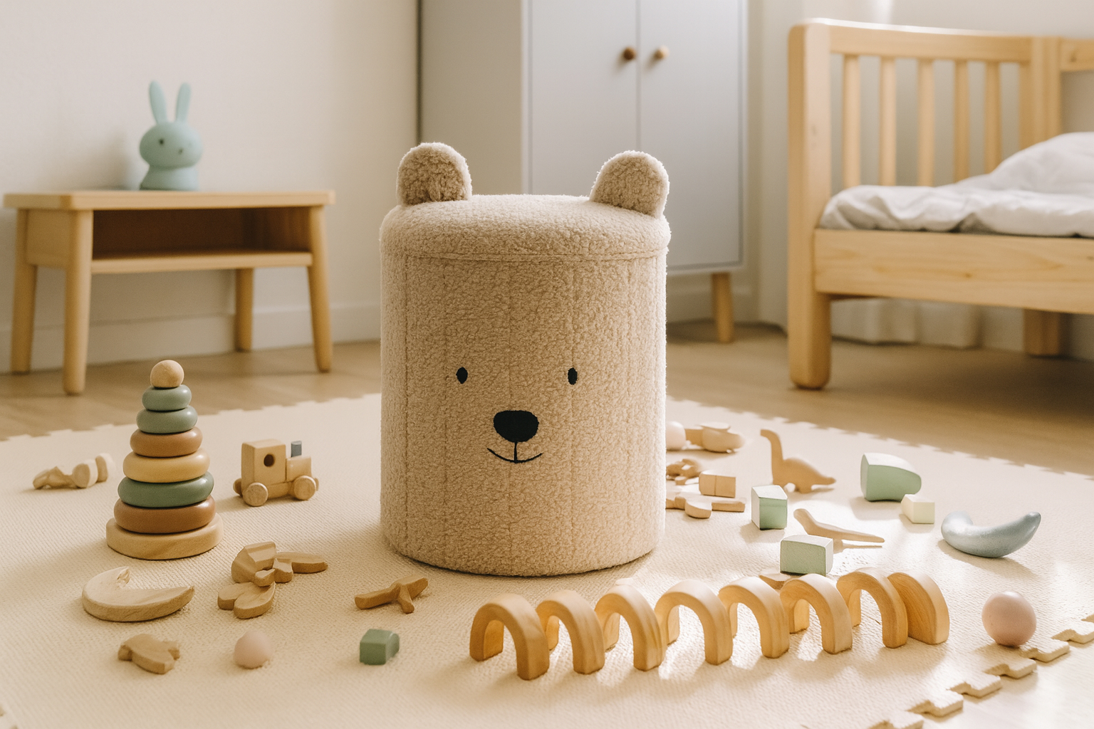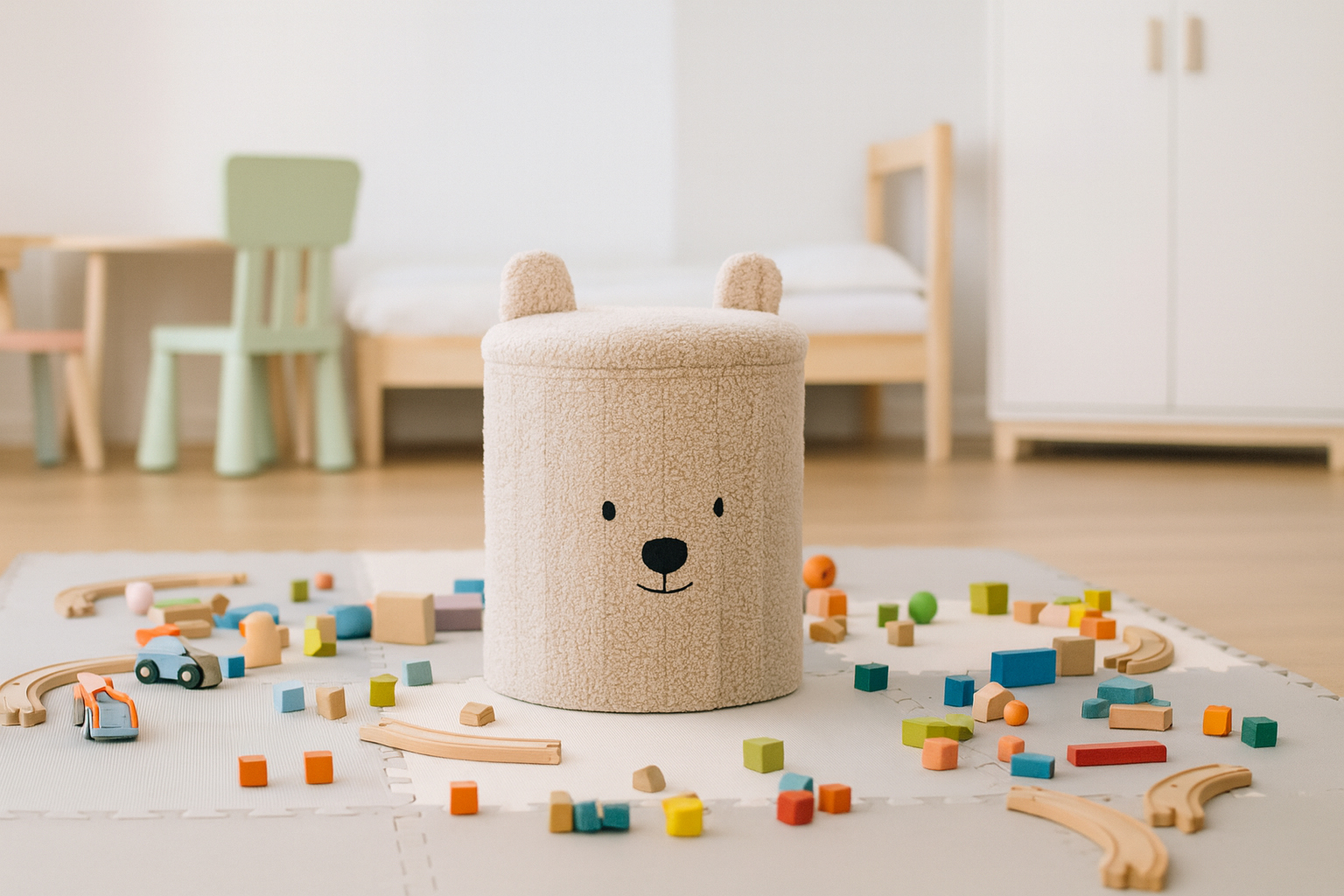 Dječji stolac s prostorom za pohranu, 28x28x34cm | bež kombinira funkciju udobnog sjedala i prostora za pohranu, što ga čini prikladnim za svaku prostoriju. Zahvaljujući kompaktnim dimenzijama od 28 × 28 × 34 cm, prikladan je za dnevni boravak, spavaću sobu, hodnik ili dječju sobu, gdje ne zauzima puno prostora.