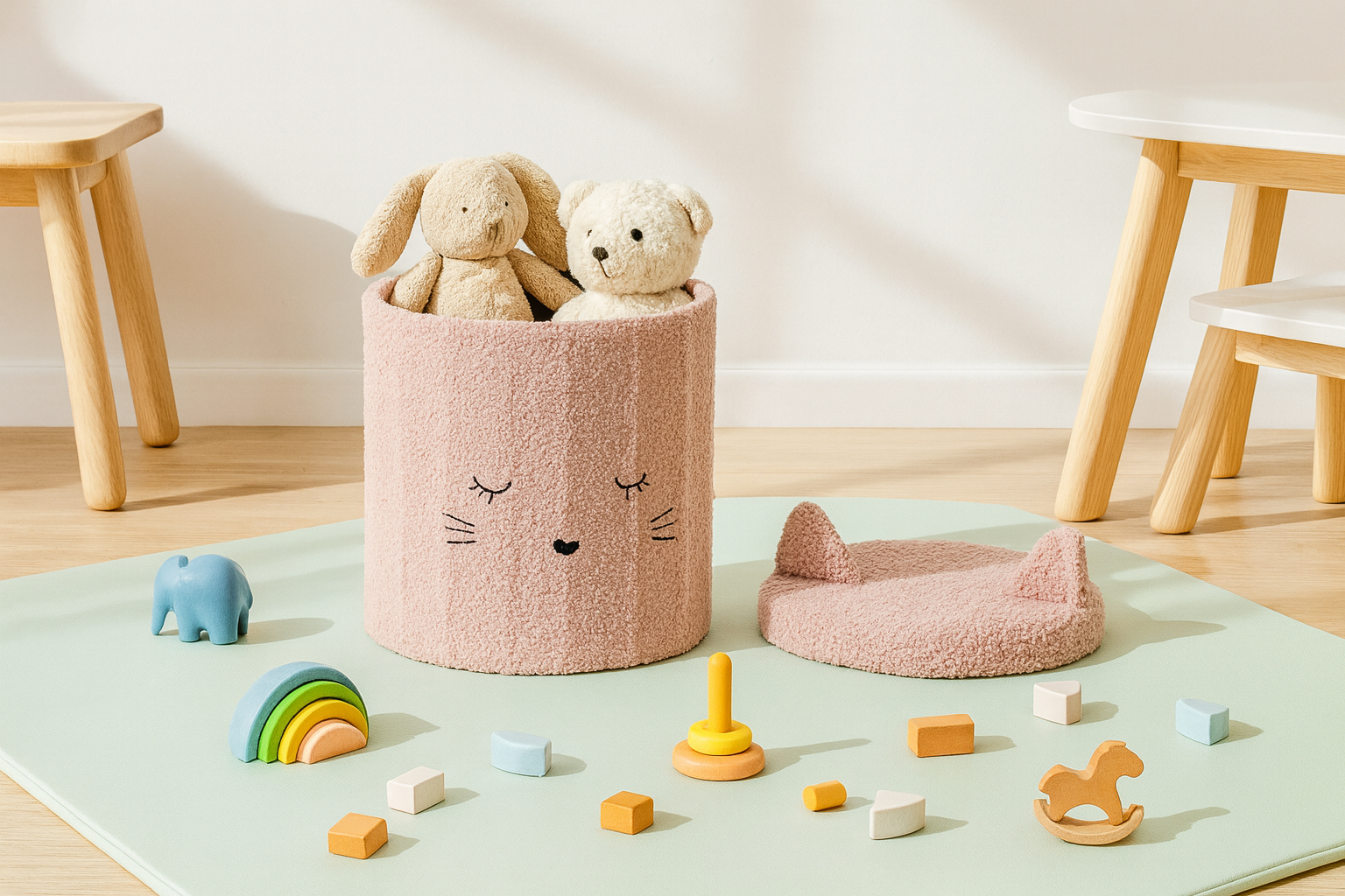 Dječji stolac s prostorom za pohranu, 28x28x34cm | roza kombinira funkciju udobnog sjedala i prostora za pohranu, što ga čini prikladnim za svaku prostoriju. Zahvaljujući kompaktnim dimenzijama od 28 × 28 × 34 cm, prikladan je za dnevni boravak, spavaću sobu, hodnik ili dječju sobu, gdje ne zauzima puno prostora.