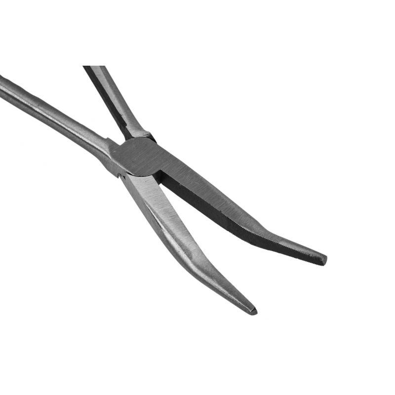 Duga zakrivljena kliješta, 20° | KD10815 koristan su ručni alat za rukovanje i držanje materijala u raznim radionicama i popravcima. Olakšavaju hvatanje, držanje, savijanje ili manipuliranje žicama, vijcima i drugim materijalima koji se nalaze u teško dostupnim ili skučenim prostorima.