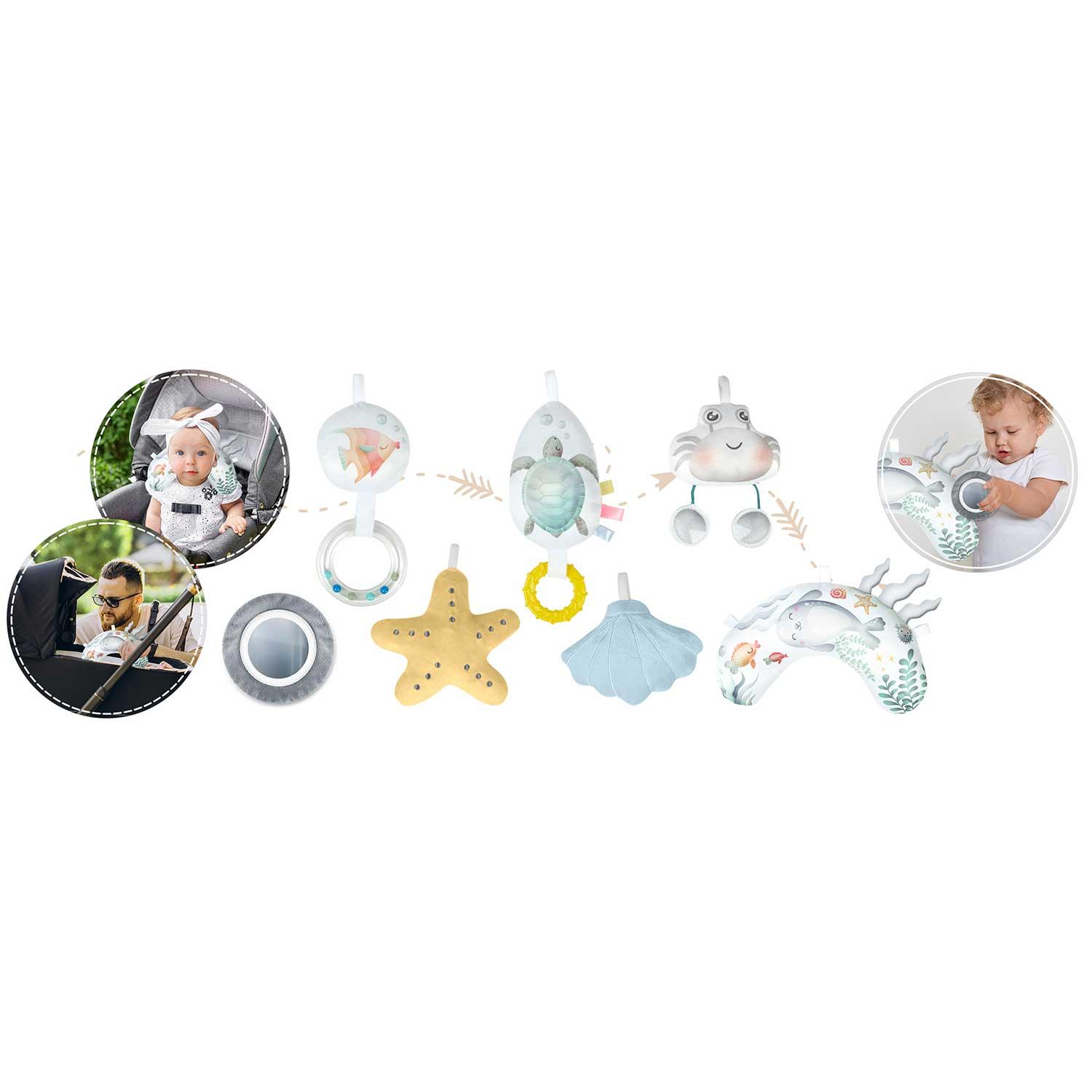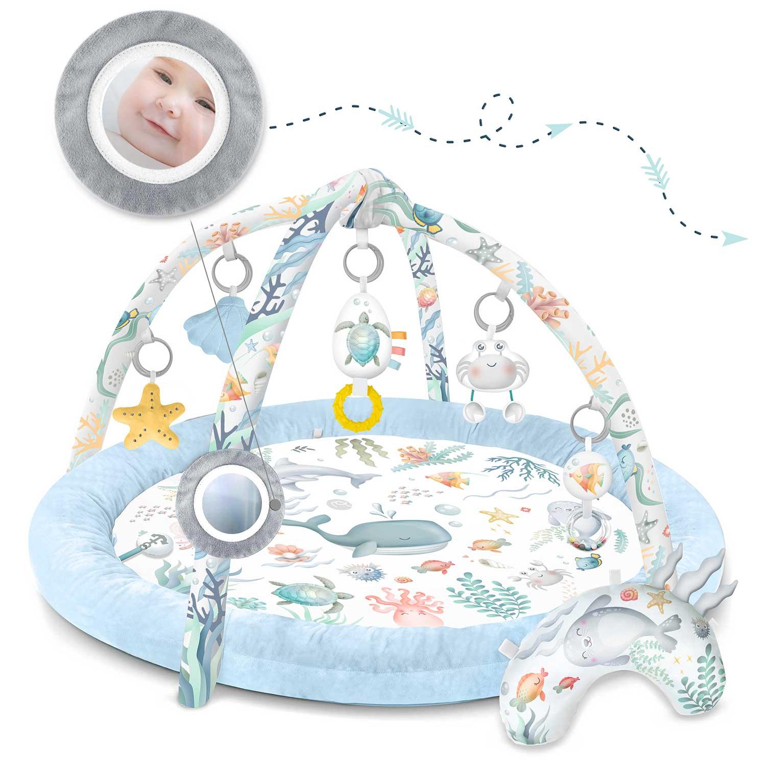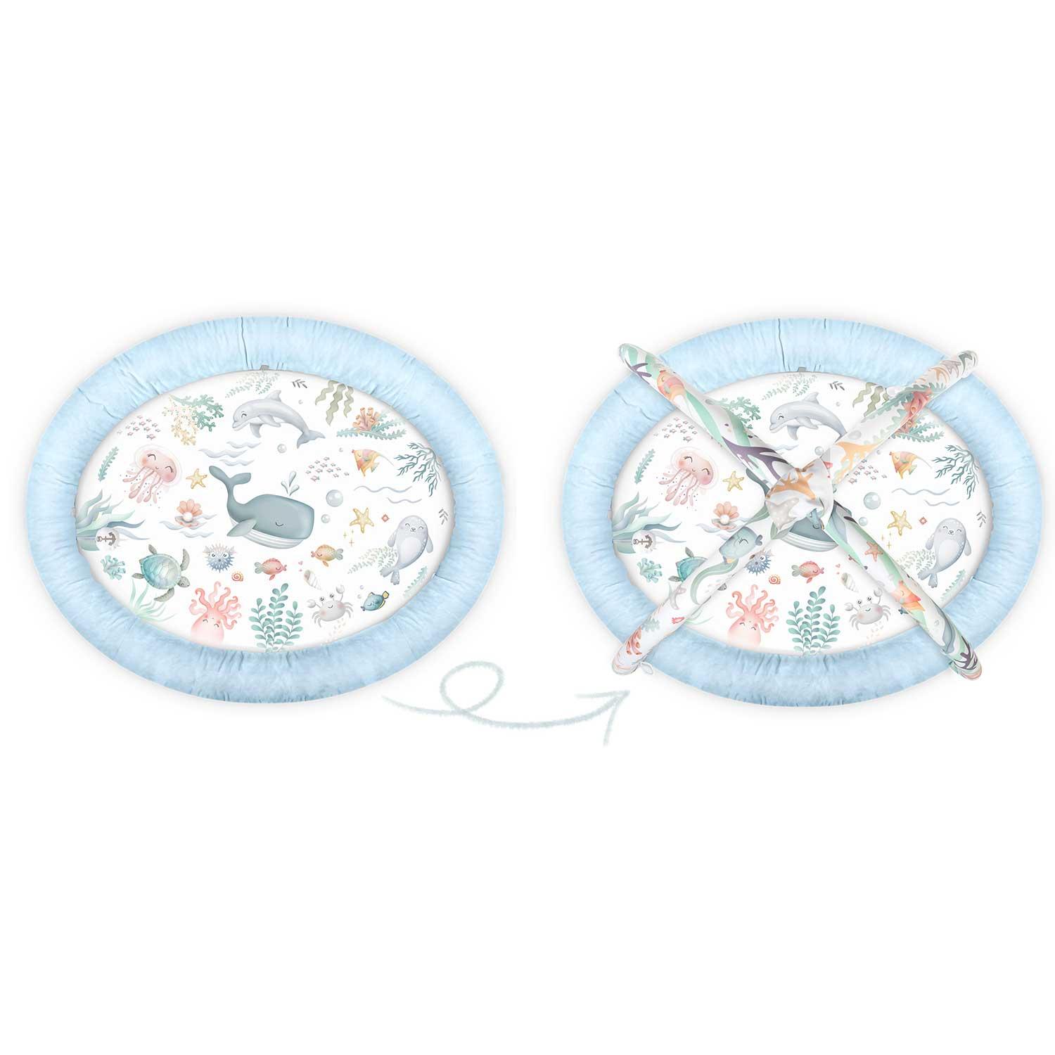 Uključen je i jastuk koji pomaže u jačanju mišića vrata i leđa. Podloga je izrađena od mekih, hipoalergenih materijala koji su ugodni na dodir, lako se čiste i zadovoljavaju stroge europske sigurnosne standarde EN 71. Zahvaljujući laganoj konstrukciji, lako se sklapa i nosi, a atraktivan dizajn s oceanskom tematikom čini je idealnim mjestom za igru i opuštanje – savršen izbor za svaku bebu i praktičan pomagač za roditelje.