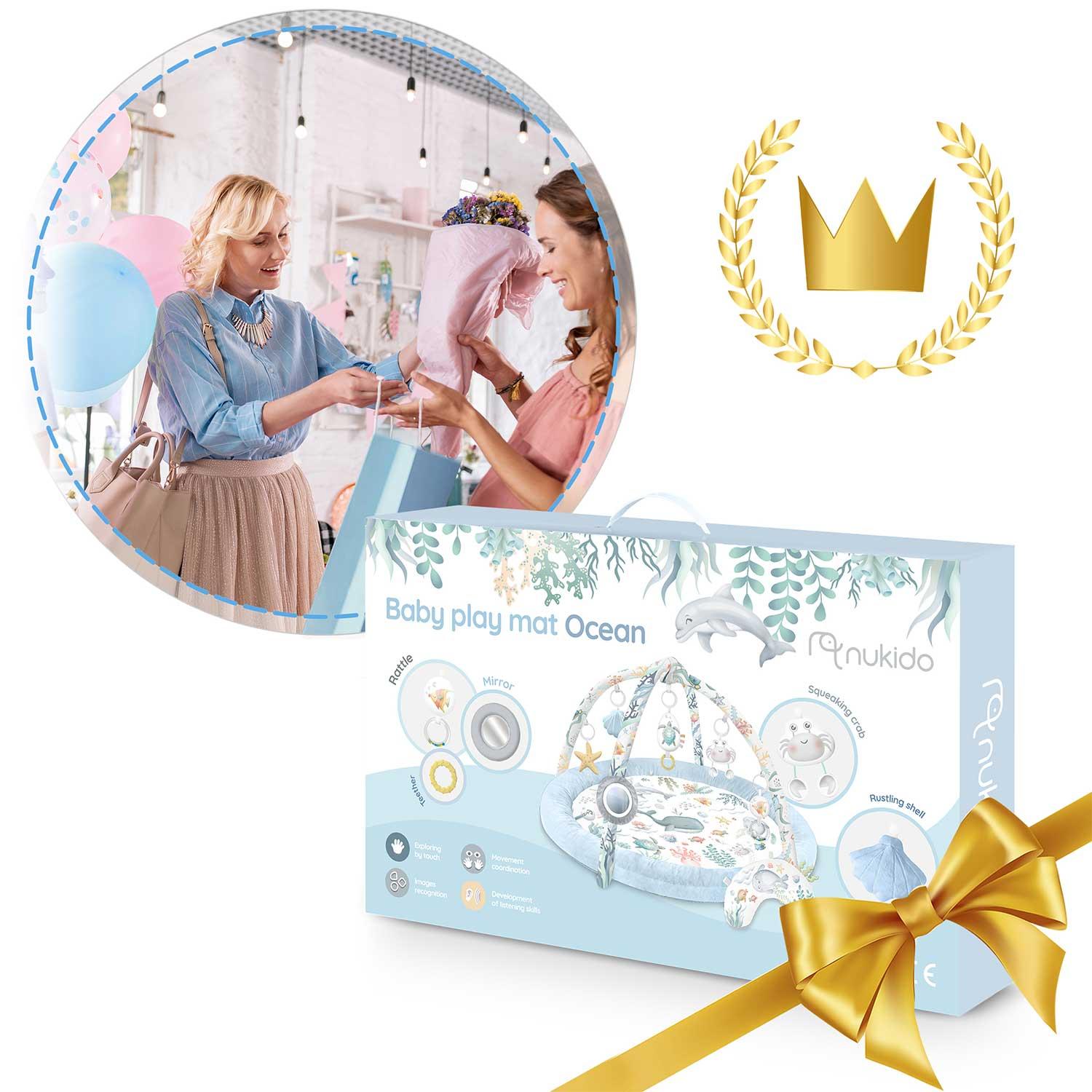 Interaktivna podloga za učenje, ocean, plava | Nukido nudi zabavan i siguran prostor za igru i razvoj vaše bebe. Podržava razvoj djeteta od prvih mjeseci života, a istovremeno mu pruža ugodno, mekano i sigurno mjesto za igru, odmor i otkrivanje novih oblika, zvukova i boja.