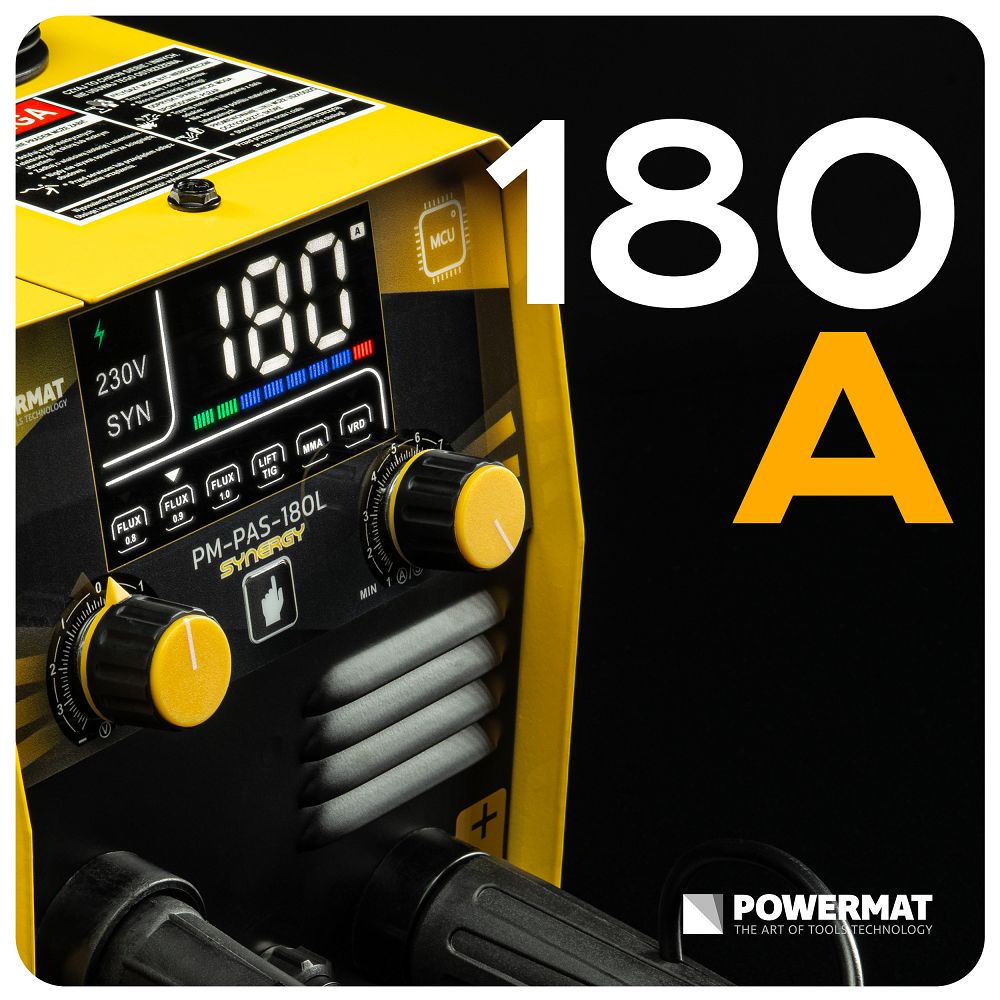 Inverterski aparat za zavarivanje MIGOMAT | PM-PAS-180L je univerzalni uređaj za zavarivanje FLUX žicom, MMA elektrodom i TIG LIFT metodom. IGBT tehnologija i sinergijski način rada pomažu u brzom odabiru parametara, zahvaljujući kojima dobivate stabilan luk i ravnomjeran zavar. LCD zaslon, sustav hlađenja i temperaturni senzor podržavaju kontrolu rada i sigurnu upotrebu. To je praktično rješenje i za radioničke i za montažne radove.