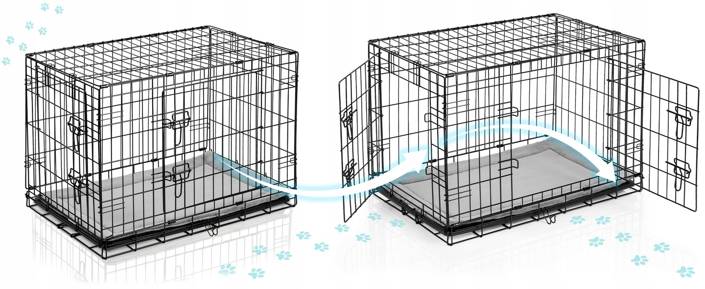 Zahvaljujući metalnoj konstrukciji s čvrstim šipkama, otporan je na oštećenja i osigurava dobru cirkulaciju zraka, što povećava udobnost vašeg psa. Kavez se lako otvara pomoću vrata s bravom, što olakšava rukovanje i pristup životinji, a istovremeno osigurava njezino sigurno držanje bez neželjenog bijega. Kavez ima pouzdan mehanizam za sklapanje i rasklapanje. U nekoliko pokreta pretvara se u ravni, lagani i praktični kofer. Možete ga lako nositi, pohraniti ili ponijeti u automobil.