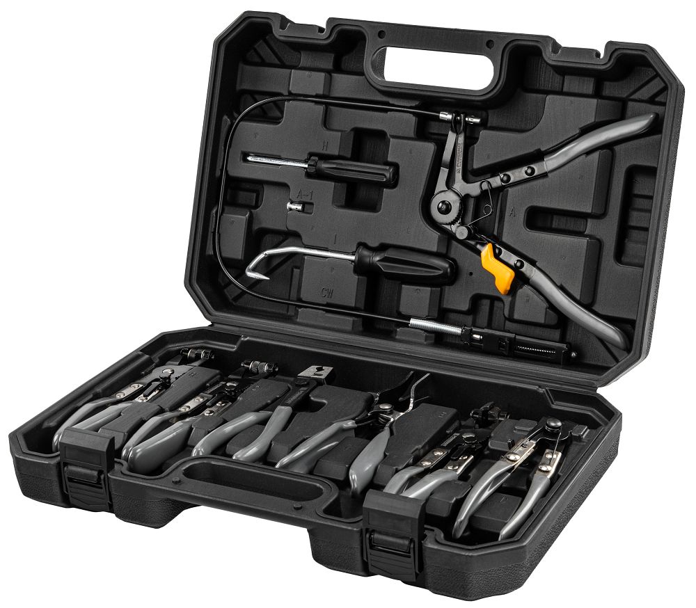 Set uključuje alate za opružne stezaljke, CLIC/CLIC-R, Oetiker i žičane stezaljke, tako da ne morate kupovati više setova. Možete otpustiti, zategnuti i ponovno instalirati stezaljke za višekratnu upotrebu i jednokratne stezaljke. To vam daje fleksibilnost rada s različitim markama automobila, uključujući popularne europske modele. Jedan set će se nositi s većinom stezaljki na koje ćete naići u motornom prostoru.
