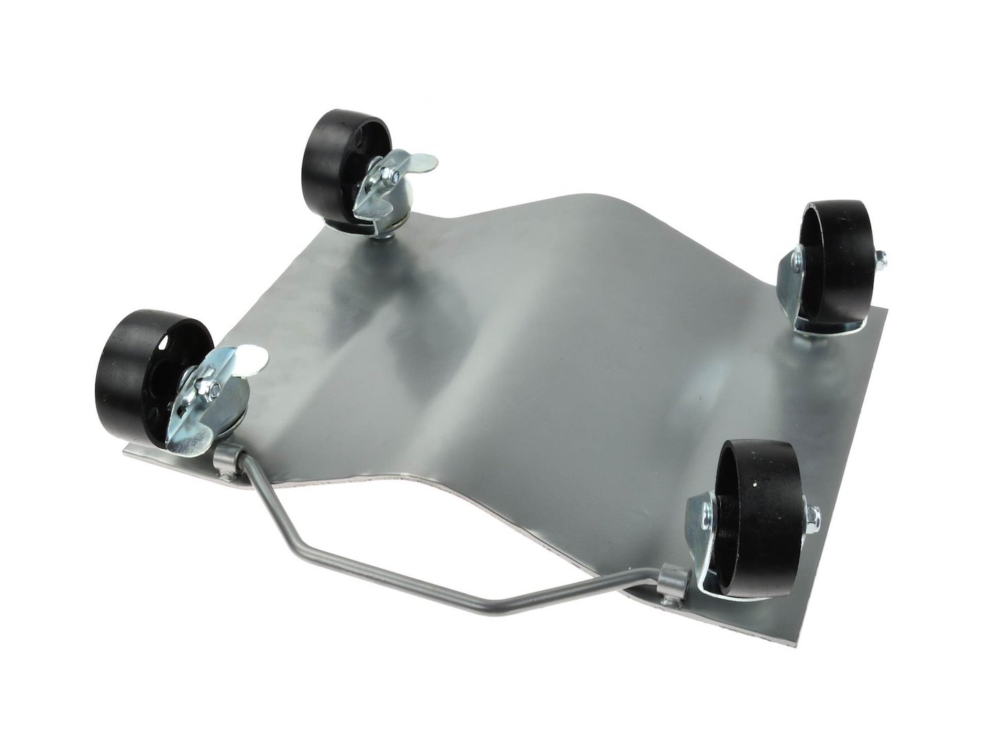 Kolica za automobilske kotače, 680 kg, 2 kom | GEKO su prikladna za svaki autoservis, pogodna su za premještanje vozila u radionici ili garaži. Svaka kolica imaju čelično tijelo, platformu s protukliznom obradom i četiri okretna kotača promjera 76 mm, od kojih su dva opremljena mehanizmom parkirne kočnice, što osigurava stabilnost pri stajanju.