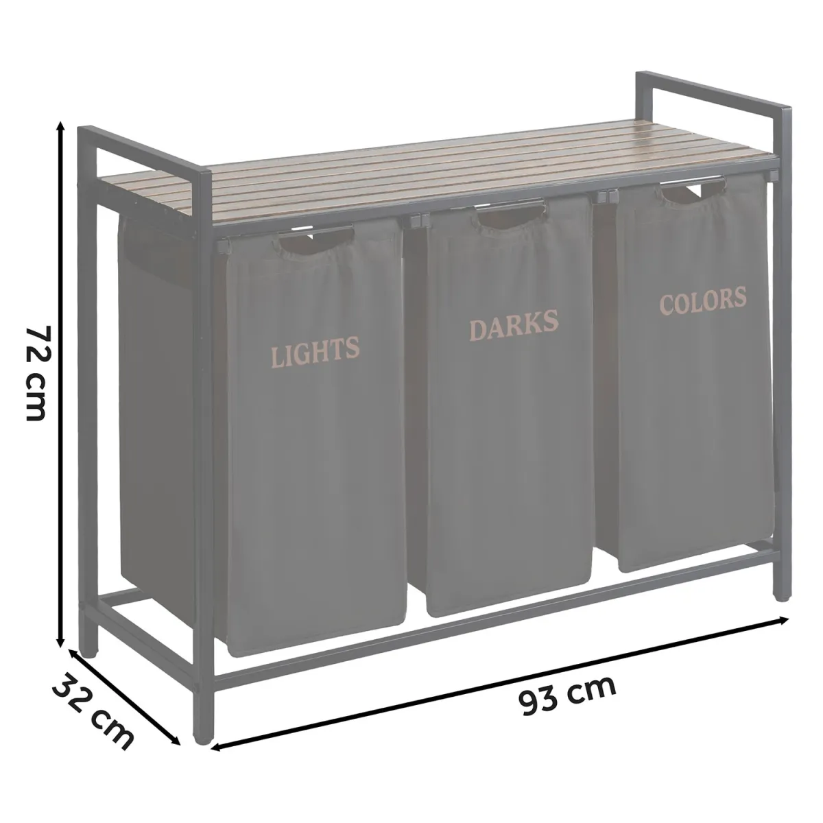Košara za rublje s tri odjeljka i okvirom, 120L, crna | Massido