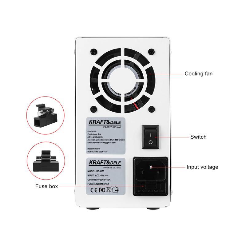 Laboratorijski izvor napajanja | KD5870 je moderni, podesivi laboratorijski izvor napajanja dizajniran za precizne servise, radionice i laboratorijske radove. Uređaj nudi širok raspon napona i izlazne struje, kao i visoku točnost i stabilnost rada. Ovaj proizvod je izvrstan izbor za elektroničare, hobiste i stručnjake kojima je potreban stabilan i siguran izvor napajanja s visokom točnošću.