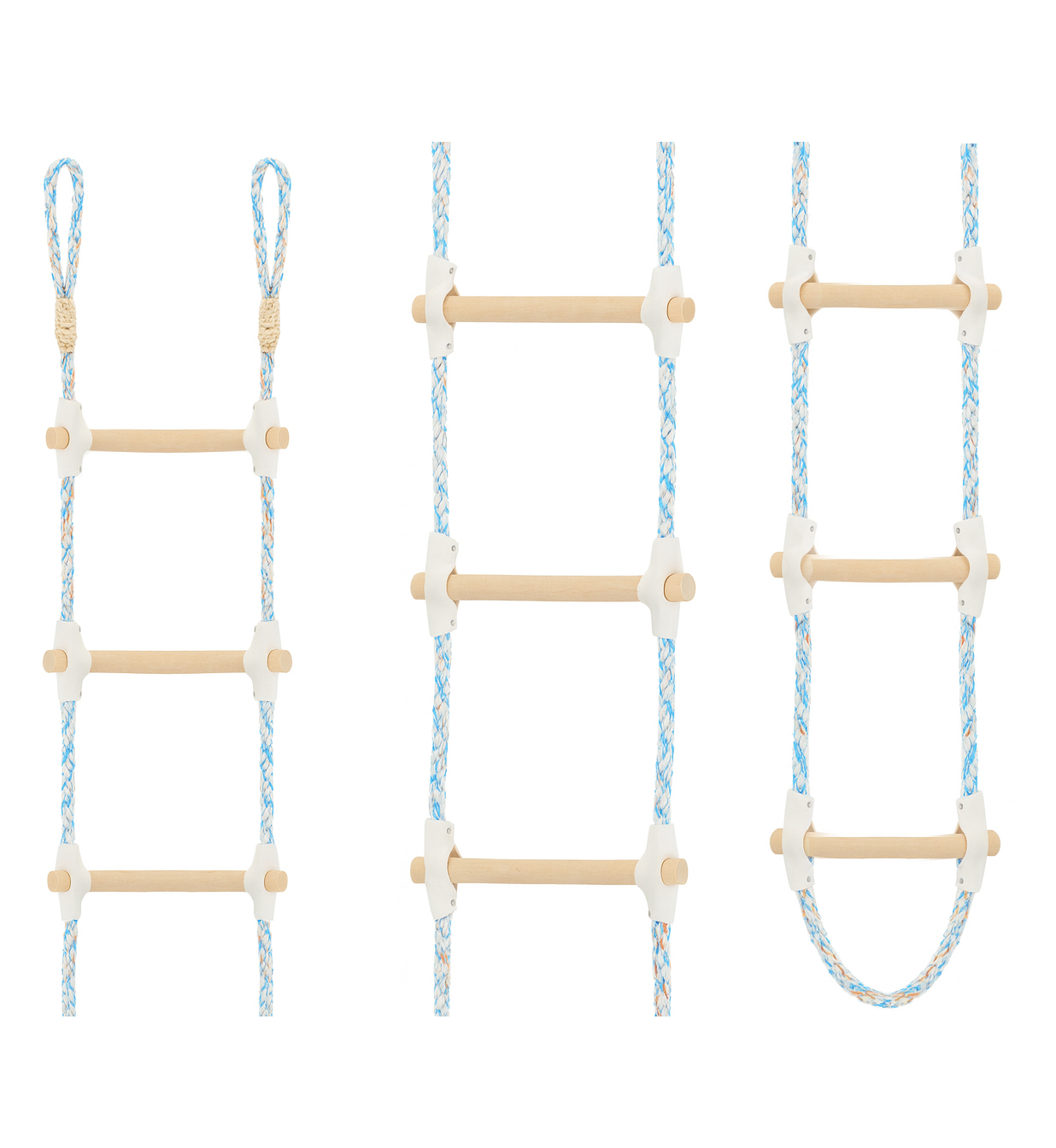 - Donja petlja – ljestve su završene s jednom donjom petljom, što cijelim ljestvama daje ujednačenu strukturu (izrađene od jednog komada užeta). Donja petlja može poslužiti i kao tzv. “prva prečka” na kojoj možete stajati.
