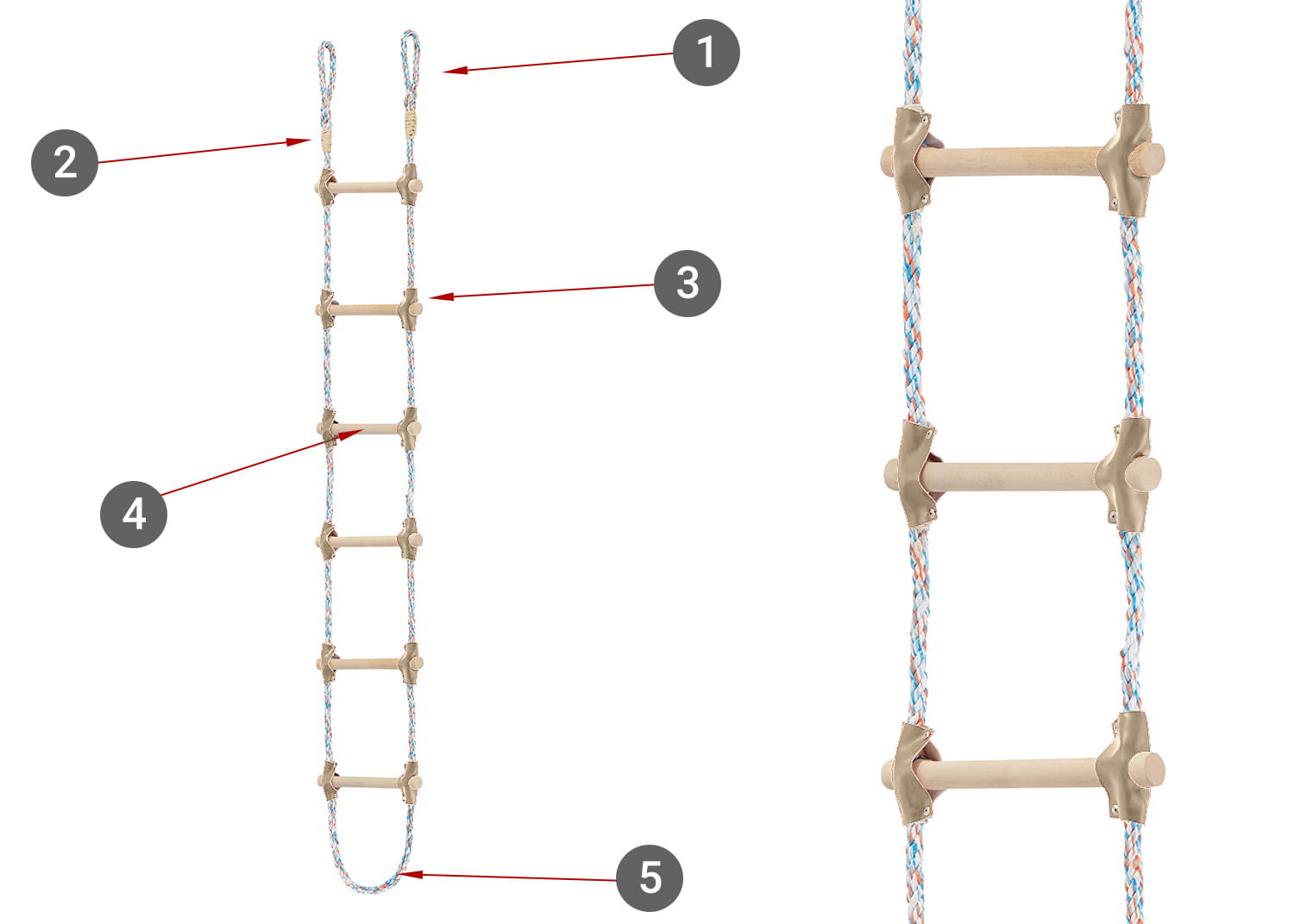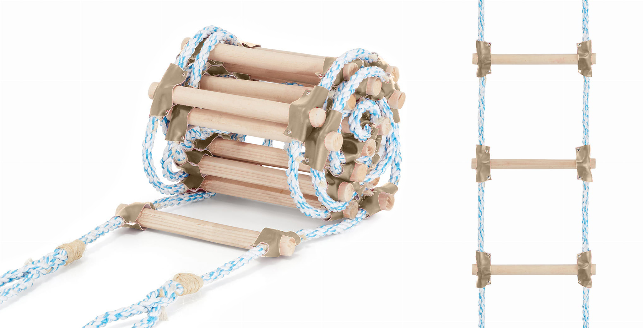 Za povećanje izdržljivosti i sigurnosti, na oba kraja svake prečke korišteni su zaštitnici (navlake) od eko kože, koji igraju važnu ulogu. Štite mjesto gdje su prečke pričvršćene za glavno uže od habanja i oštećenja. Pružaju izvrsnu zaštitu od ogrebotina uzrokovanih tvrdim površinama prečki.