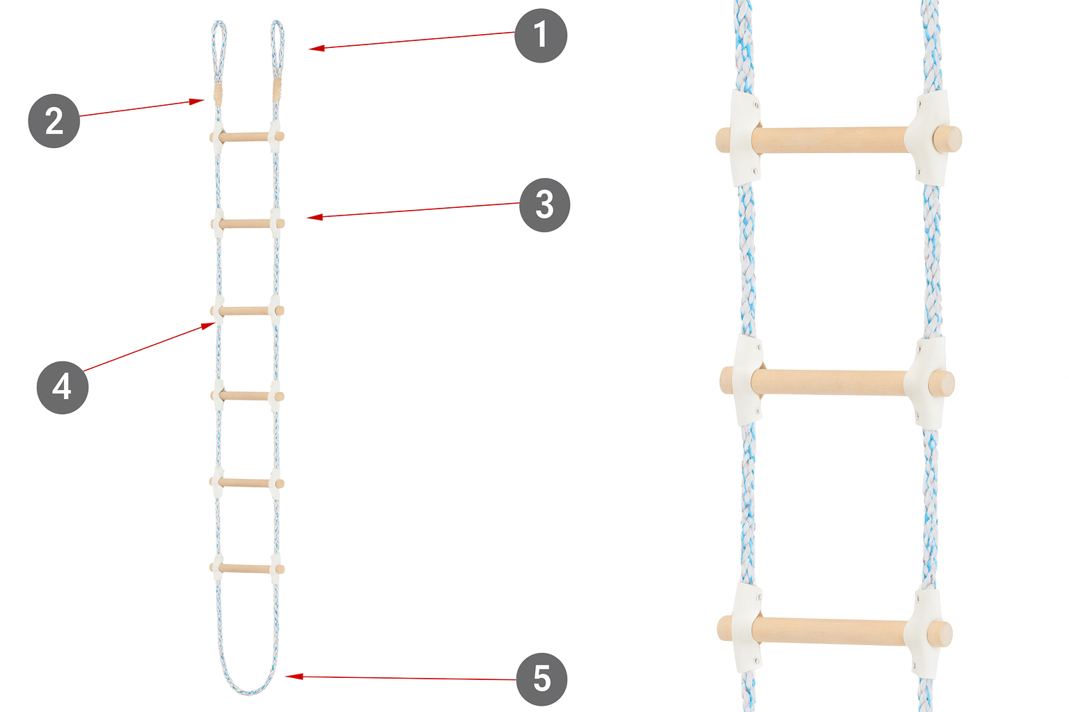 Za povećanje izdržljivosti i sigurnosti, na oba kraja svake prečke korišteni su zaštitnici (navlake) od eko kože, koji igraju važnu ulogu. Štite mjesto gdje su prečke pričvršćene za glavno uže od habanja i oštećenja. Pružaju izvrsnu zaštitu od ogrebotina uzrokovanih tvrdim površinama prečki.