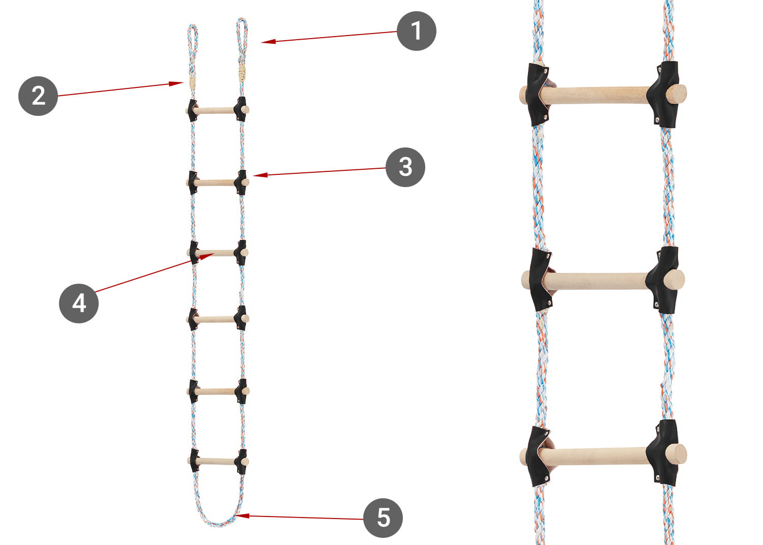 Za povećanje izdržljivosti i sigurnosti, na oba kraja svake prečke korišteni su zaštitnici (navlake) od eko kože, koji igraju važnu ulogu. Štite mjesto gdje su prečke pričvršćene za glavno uže od habanja i oštećenja. Pružaju izvrsnu zaštitu od ogrebotina uzrokovanih tvrdim površinama prečki.