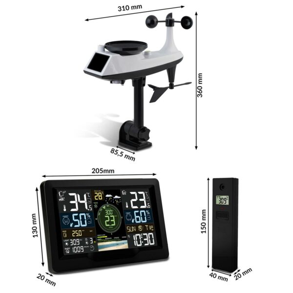 Stanica je opremljena velikim LCD zaslonom u boji koji jasno prikazuje sve važne informacije, uključujući trenutno vrijeme, datum, vremensku prognozu, prognoze i upozorenja. Podaci s bežičnih senzora pouzdano se prenose na udaljenosti od nekoliko desetaka metara, tako da senzore možete postaviti bilo gdje u vrtu ili posjedu.