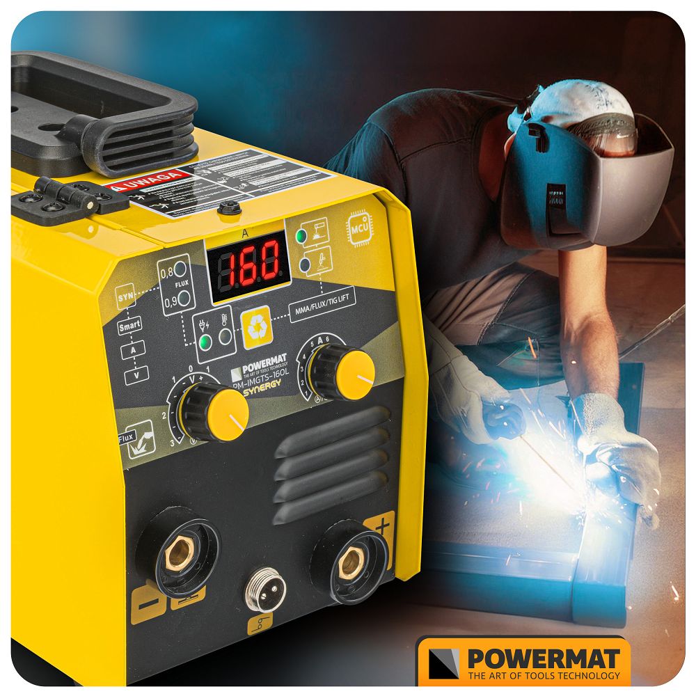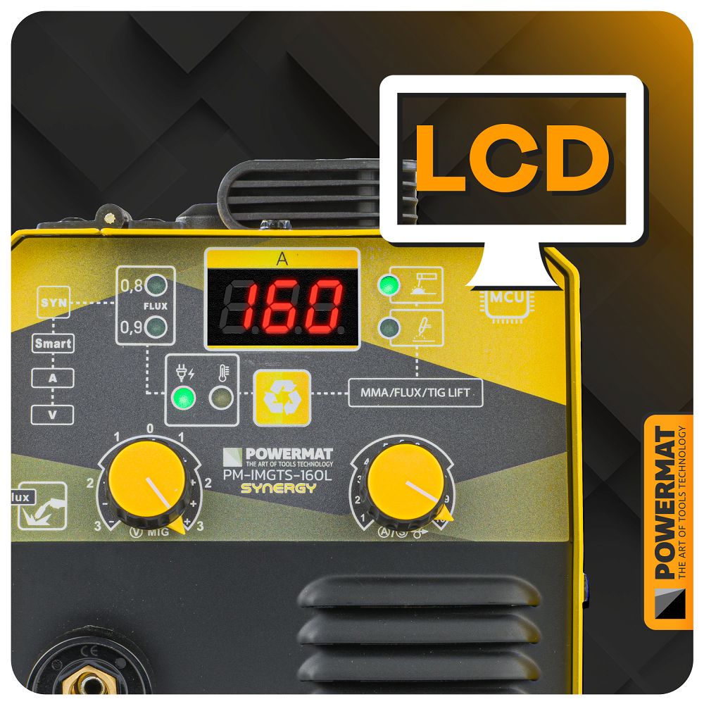 Migomat inverterski aparat za zavarivanje | PM-IMGTS-160L je praktičan i svestran uređaj dizajniran za rutinske radove zavarivanja u radionici, garaži i tijekom održavanja. Riječ je o automatskom aparatu za zavarivanje baziranom na učinkovitim IGBT tranzistorima. Opremljen je s dva jasna LCD zaslona koji prikazuju trenutnu postavljenu struju zavarivanja pomoću tipki, od kojih jedna služi i kao tipka za odabir funkcija.