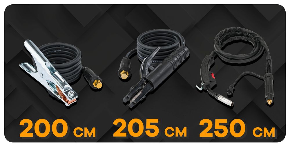 - Držač MMA elektrode (+): 205 cm / promjer utikača 9 mm 12-25