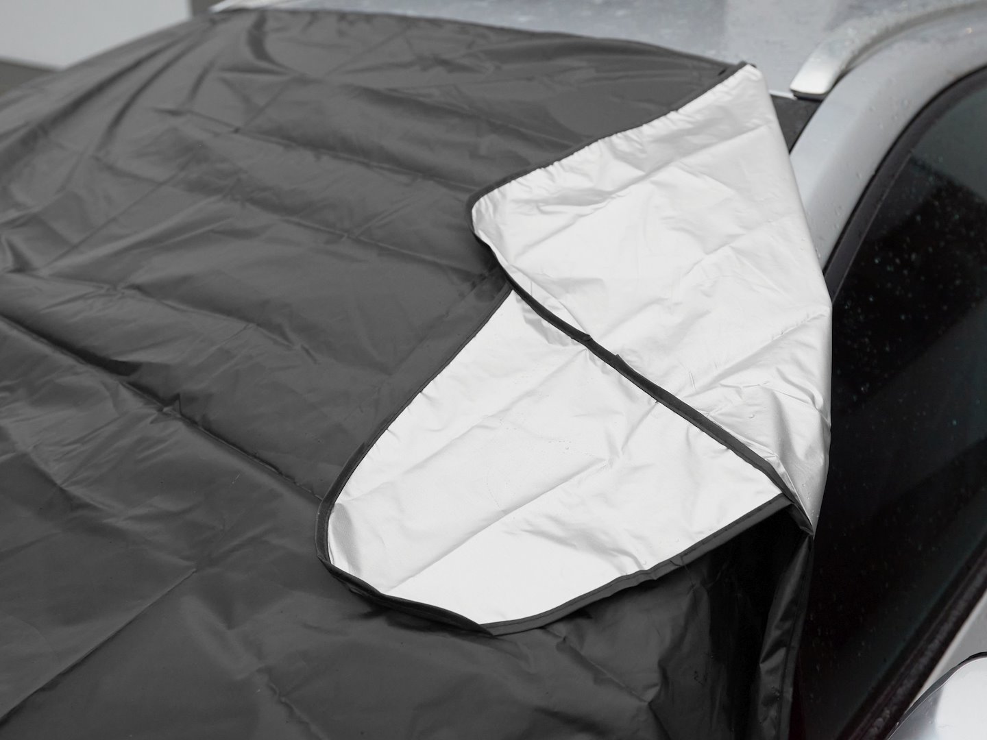 Opremljena je jakim feritnim magnetima ušivenim u posebne zaštitne džepove kako ne bi oštetili lak. Nalaze se na odgovarajućim mjestima pričvršćivanja, što omogućuje precizno podešavanje podloge na prozor automobila. Osim toga, podloga ima bočne preklope koji se lako pričvršćuju vratima automobila. Navlaka se može koristiti zimi kako bi se spriječilo smrzavanje vjetrobranskog stakla, a ljeti kako bi se spriječilo pregrijavanje unutrašnjosti automobila.
