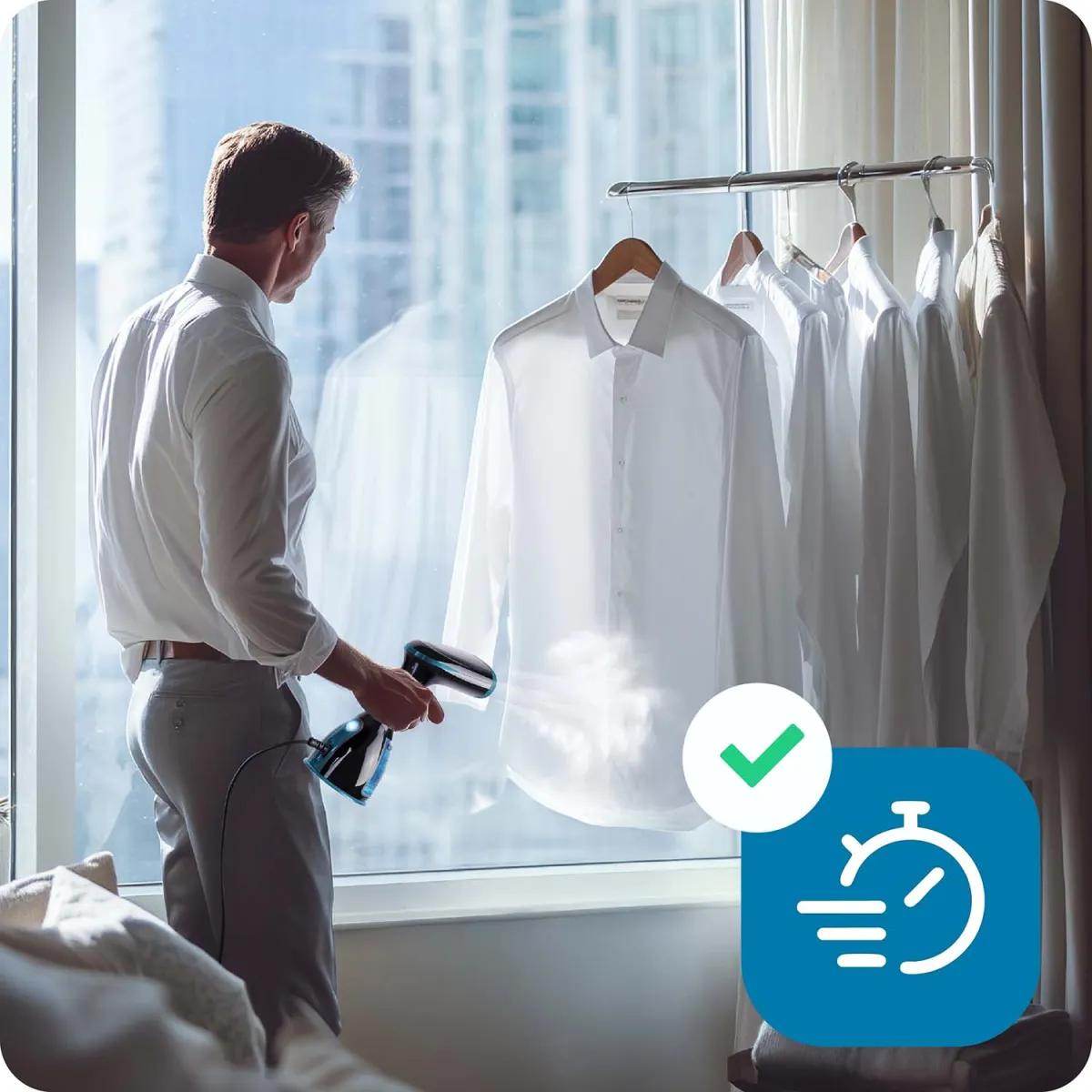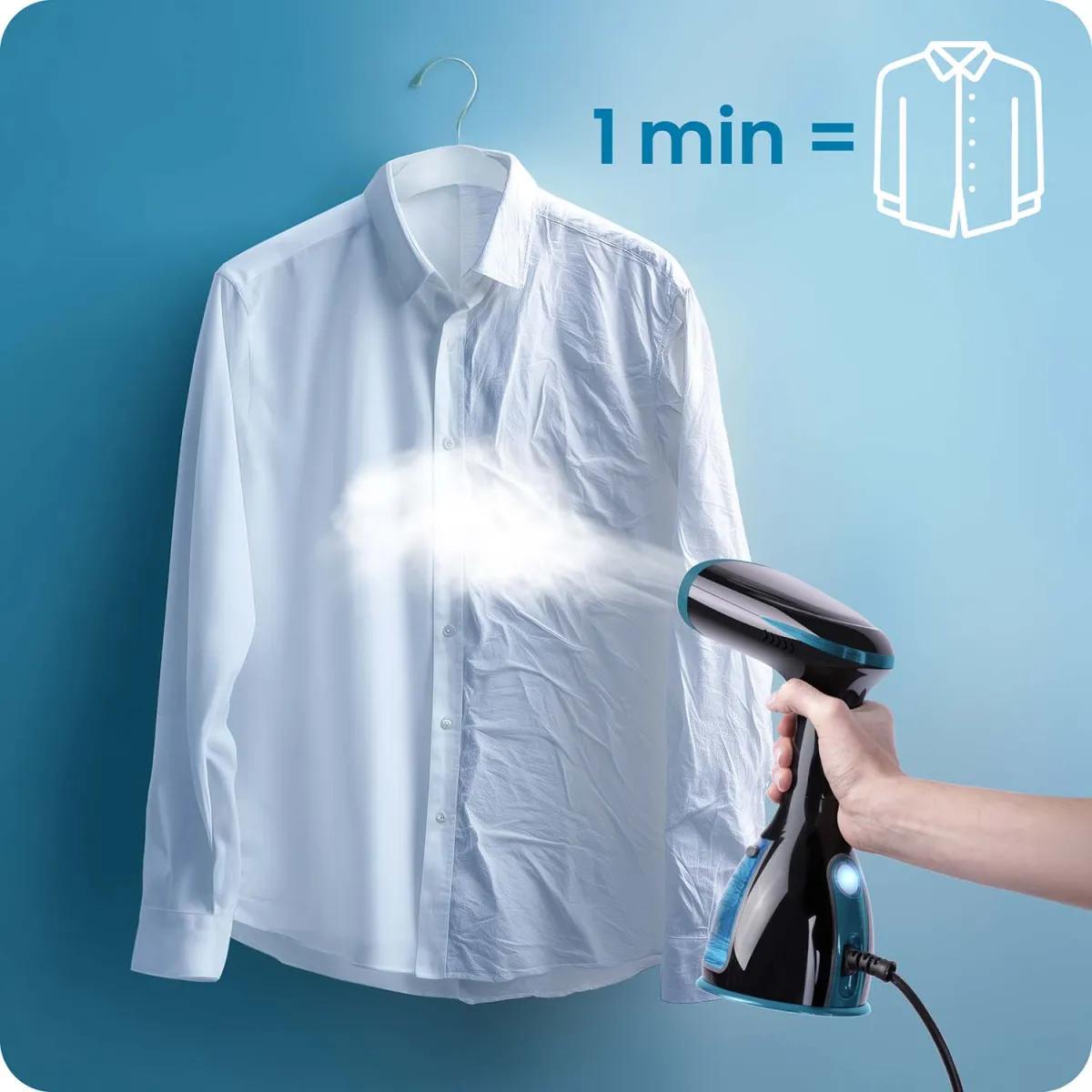 Zahvaljujući nježnom glačanju na pari, prikladno je i za osjetljive materijale poput svile, bluza ili zavjesa. Spremnik za vodu od 280 ml omogućuje nekoliko minuta neprekidnog rada i može se lako isključiti i ponovno napuniti. Upravljanje je vrlo jednostavno – samo jedan gumb, dopunjen indikatorskom lampicom rada.