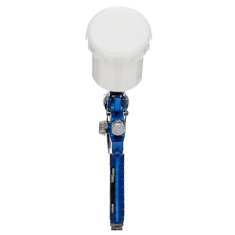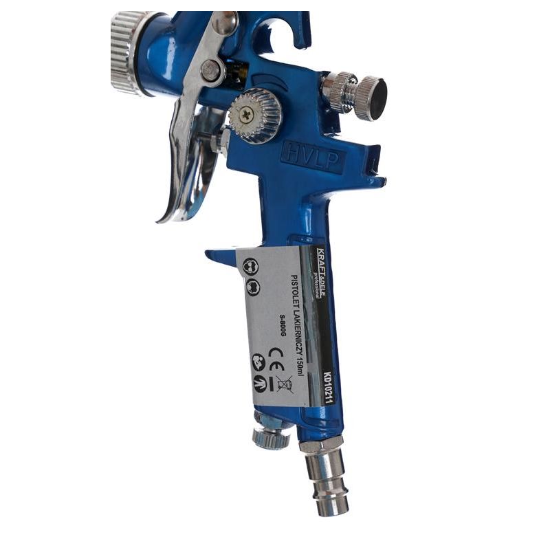 Pištolj za prskanje, 150ml | KD10211 je praktičan i jednostavan alat namijenjen preciznom nanošenju boja, lakova i drugih površinskih tretmana. Pogodan je za bojanje površina bojama na bazi vode, akrilnim temeljnim premazima, kitovima, metalik i bisernim bojama. Zahvaljujući finoj mlaznici promjera 0,8 mm i spremniku volumena 150 ml, omogućuje ravnomjerno pokrivanje manjih površina bez nepotrebnog rasipanja materijala.