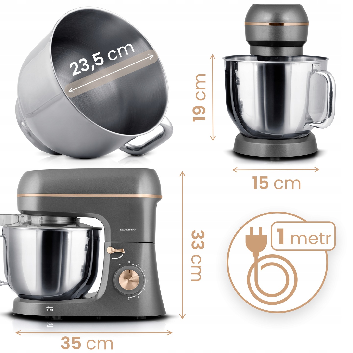 Planetarni kuhinjski robot BD-756 3u1, 6L, 1400W | Berdsen opremljen bakrenim motorom, lako se nosi čak i s najtvrđim tijestima, jamči stabilnost i pouzdanost. Zahvaljujući svom potpuno metalnom sustavu zupčanika, nadmašuje modele s plastičnim zupčanicima u pogledu izdržljivosti i otpornosti na habanje, što ga čini investicijom za dugi niz godina.