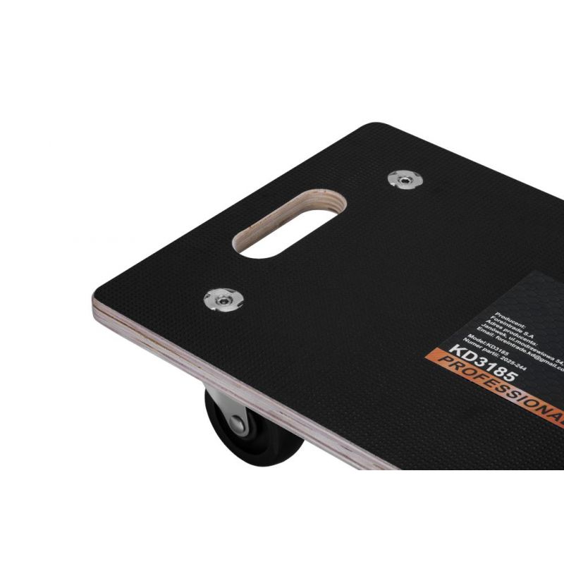 Platforma za transport kolica, 200 kg | KD3185 su kompaktno i izdržljivo prijevozno sredstvo dizajnirano za upotrebu u skladištima, radionicama ili tijekom selidbi. Njihova čvrsta čelična konstrukcija jamči dugotrajan i nesmetan rad čak i s maksimalnim opterećenjem od 200 kg. Ova kolica idealna su za prijevoz kutija, alata, dijelova i drugih teških predmeta.