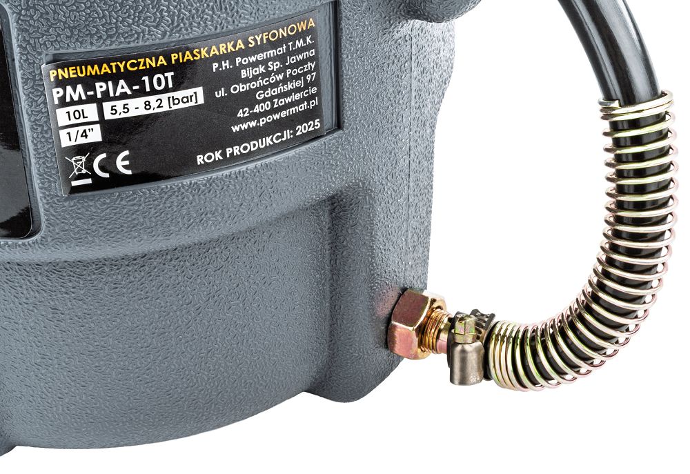 Pneumatska pjeskarica, sifon, 10L | PM-PIA-10T prikladna je za učinkovito čišćenje, obradu i obnovu različitih površina u radionici i industriji. Uređaj radi sa suhim, čistim abrazivnim materijalima, kao što su kvarcni pijesak, korund, staklene kuglice ili sačma. Izbor medija omogućuje vam kontrolu agresivnosti čišćenja i konačnog površinskog efekta.