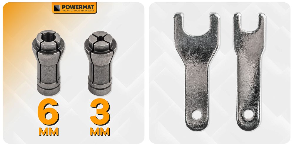 Lagano i praktično kućište s ergonomskim okidačem omogućuje udobno upravljanje alatom u bilo kojem radnom položaju. Vibracije od 0,9 m/s² smanjuju umor i povećavaju udobnost tijekom dulje upotrebe. Brusilica se isporučuje sa setom ključeva i dva standardna vretena promjera 6 mm i 3 mm. Ključevi omogućuju brzu i sigurnu izmjenu svrdla, a različite veličine vretena povećavaju kompatibilnost sa širokim rasponom alata i brusnih ploča.