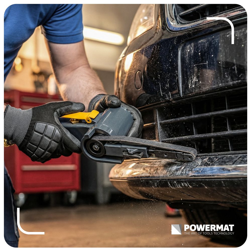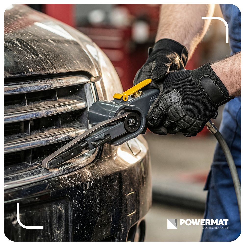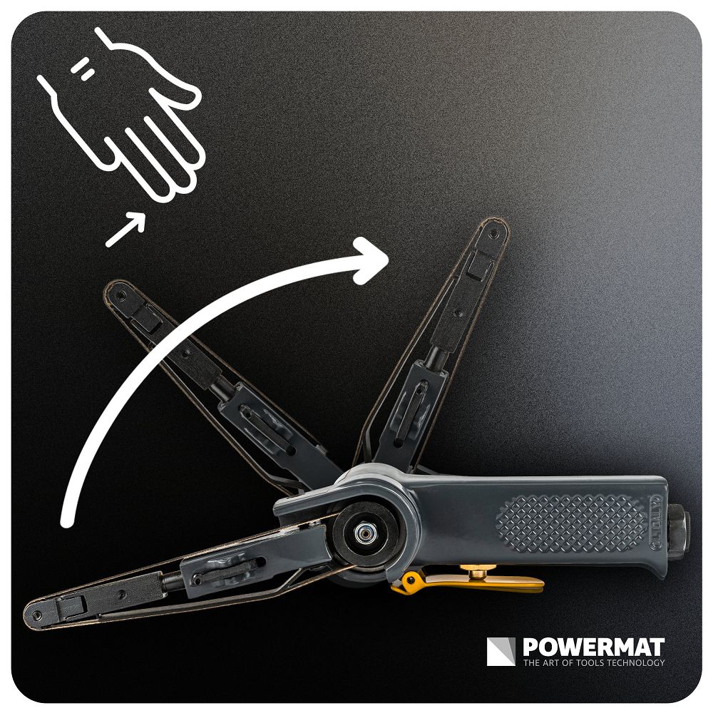 Pneumatska tračna brusilica, 10x330mm | PM-PST-330T je alat za precizno brušenje, čišćenje i obradu metala i drugih materijala. Uska traka od 10 x 330 mm omogućuje vam dosezanje teško dostupnih mjesta i detalja. Možete precizno obrađivati rubove, zavare i kutove bez spajanja i gubitka vremena. Brzina od 20 000 o/min znači učinkovito uklanjanje materijala i kraće vrijeme obrade. Radite brže, a rezultat je ujednačen i ponovljiv.