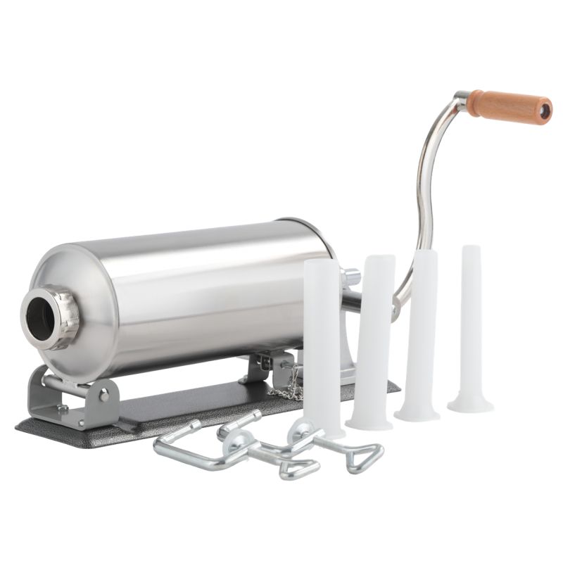 Punjač kobasica, 3 kg | KD4130 je praktičan kuhinjski aparat koji vam omogućuje brzu i jednostavnu pripremu domaćih kobasica. Njegova čvrsta konstrukcija od nehrđajućeg čelika i aluminijske legure jamči izdržljivost, otpornost na koroziju i dugotrajnu pouzdanost. Zahvaljujući ručnoj ručici i stabilnom pričvršćivanju na stol, uređaj je jednostavan za korištenje i siguran. Njegov sklopivi dizajn čini čišćenje jednostavnim i praktičnim.