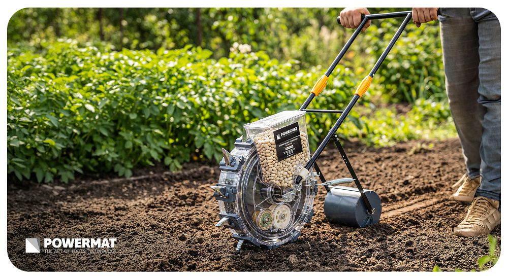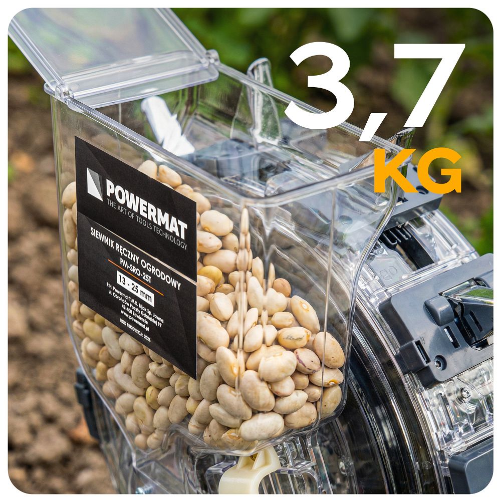Ručna sijačica za točkasto sjetvu, 3,7 kg | PM-SRO-25T omogućuje preciznu i ravnomjernu sjetvu sjemena bez potrebe za saginjanjem, što olakšava rad u vrtu. Uređaj koristi četku za veće sjeme i sustav žlice za manje, što vam omogućuje prilagodbu načina sjetve vrsti materijala. Zahvaljujući tome, sjeme se skuplja i polaže kontrolirano i ravnomjerno. Ograničava se rizik od oštećenja i pogrešaka tijekom sjetve. Dobivate veću svestranost bez potrebe za promjenom uređaja.