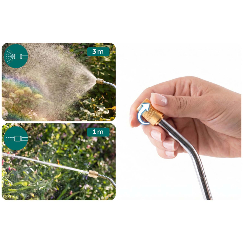 Podesiva mlaznica s dosegom do 83 cm olakšava rad čak i na teško dostupnim mjestima bez potrebe za saginjanjem. Ergonomska ručka i remen za rame poboljšavaju udobnost tijekom dulje upotrebe i pomažu u ravnomjernoj raspodjeli težine. Izdržljiva plastična konstrukcija od PE materijala može podnijeti kontakt s uobičajenim kemikalijama i osigurava dug vijek trajanja. Praktične značajke poput integriranog lijevka za jednostavno punjenje ili stabilne konstrukcije povećavaju udobnost tijekom svakodnevnog rada u vrtu.