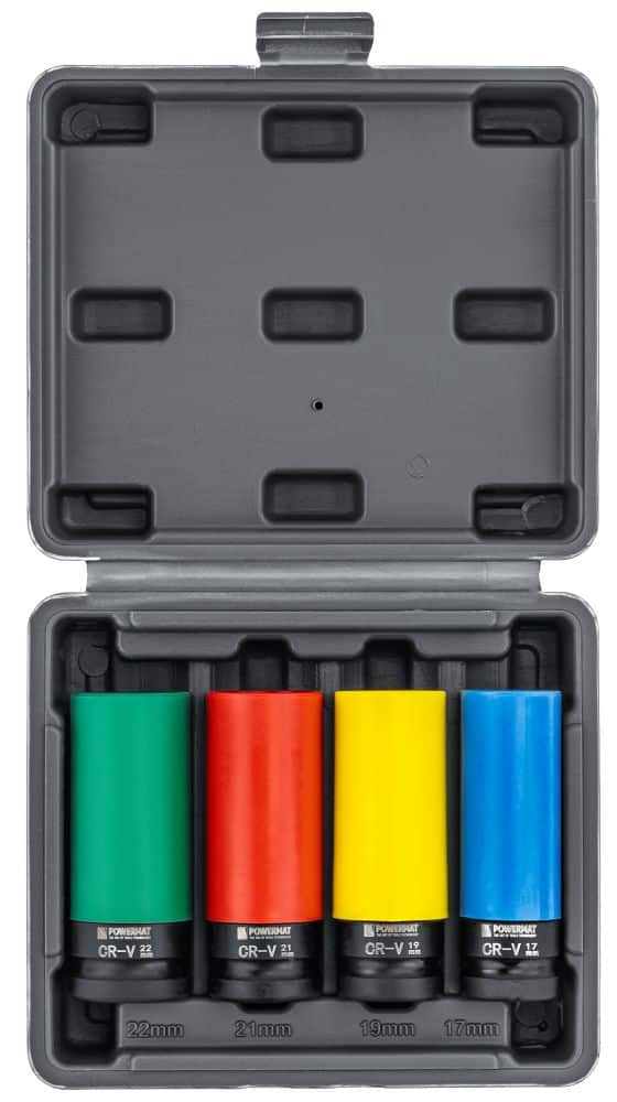 Set nasadnih ključeva, 4 kom | PM-ZNU-1722T uključuje više veličina za učinkovito zatezanje i otpuštanje vijaka u održavanju automobila ili radionice. Set uključuje 4 veličine: 17 mm, 19 mm, 21 mm i 22 mm, što jamči savršeno prianjanje na najčešće vijke u aluminijskim naplatcima. Ovo praktično rješenje jamči brz odabir pravog alata bez potrebe za traženjem dodatnih komponenti.