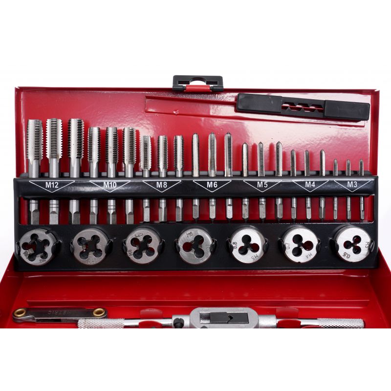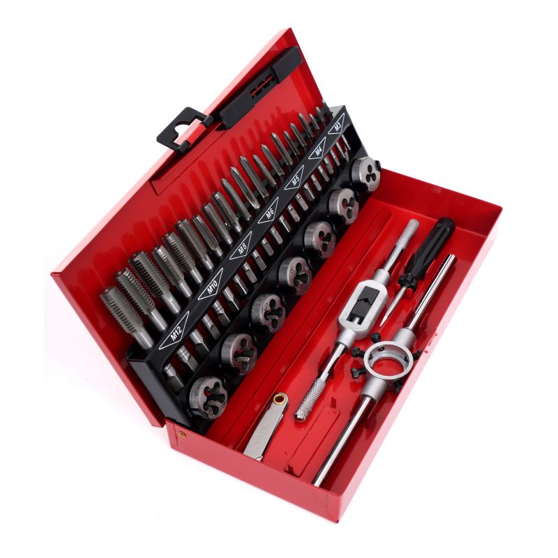 Set navojnih ključeva i matica, 32 kom | KD10090 sadrži jednostavne alate koji su neophodni u svakoj radionici, kućnoj garaži ili radnom mjestu. Set se koristi za popravak navojnih spojeva svih vrsta u većini materijala. Izrađeni su od najkvalitetnijeg kaljenog čelika. Navojni ključevi se koriste za rezanje unutarnjih navoja.