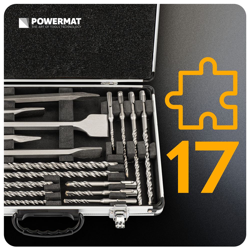 Set svrdla i dlijeta, SDS PLUS, 17 kom | PM-ZWD-17T namijenjen je za bušenje i dlijeto u betonu i zidu tijekom građevinskih i rekonstrukcijskih radova. Set sadrži 12 svrdla i 5 SDS Plus dlijeta u najčešće korištenim veličinama, što vam omogućuje rad bez nepotrebnih prekida. Legirani čelik i kaljena konstrukcija smanjuju trošenje tijekom intenzivne upotrebe i omogućuju vam bušenje i dlijeto bez brige o oštećenjima ili brzom otupljivanju.