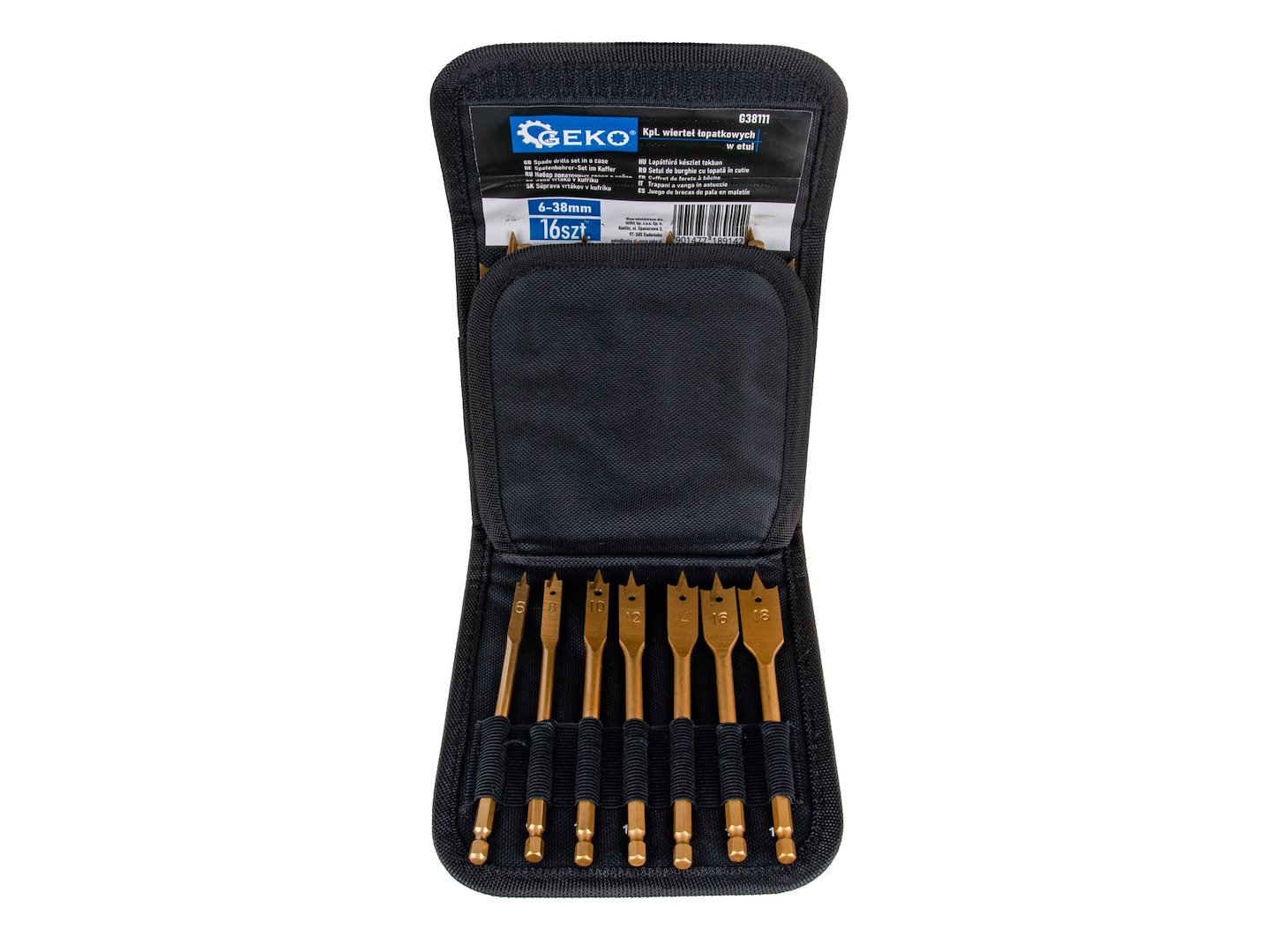 Set svrdla u kutiji, 16 komada, 6-38 mm | GEKO je idealno rješenje za one koji cijene svestranost, kvalitetu i preciznost u svom radu. Zahvaljujući širokom rasponu veličina (od 6 mm do 38 mm), ovi alati idealni su za rad s drvetom, pločama za namještaj, plastikom, kao i gipsanim pločama i gaziranim betonom. Svrdla su izrađena od visokokvalitetnog kaljenog ugljičnog čelika, izuzetno su izdržljiva i otporna na oštećenja, što jamči dugi vijek trajanja i pouzdanost u svim uvjetima.