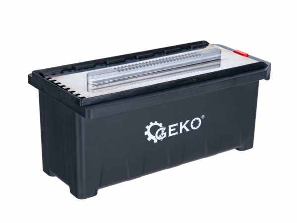 Set za nanošenje ljepila za pločice, 280x115mm | GEKO sadrži potrebne alate koji pojednostavljuju svakodnevni rad keramičara. Set uključuje 6 izmjenjivih češljeva s različitim vrstama zubaca, ručku za brzo otpuštanje i praktičnu kutiju za transport. Svaka lopatica ima dimenzije 280 x 115 mm, što ih čini idealnim za veće i manje površine.