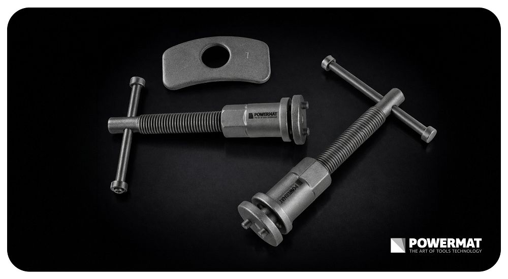 Dvije desne i lijeve preše omogućuju vam rad u različitim smjerovima klipa i bolju kontrolu pri pomicanju unatrag. Prilagođavanje čeljustima smanjuje rizik od oštećenja. Ključevi od 6 mm i 7 mm te dvije vrste izvlakača proširuju mogućnosti bez dodatnog alata. Zaštitna kutija štiti komponente. Magnetski vrhovi drže dio u osi klipa, povećavajući kontrolu i minimizirajući rizik od oštećenja kočionog sustava. Svi dijelovi su organizirani i osigurani za jednostavan transport bez gubitka.